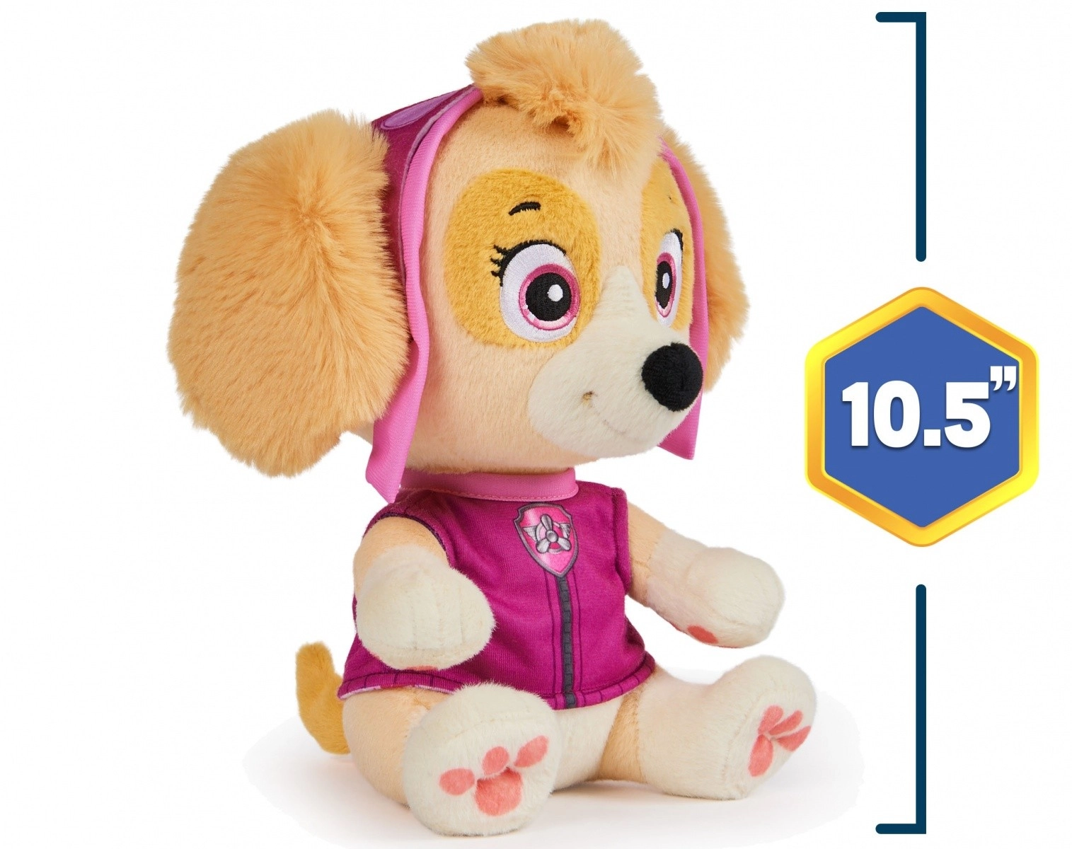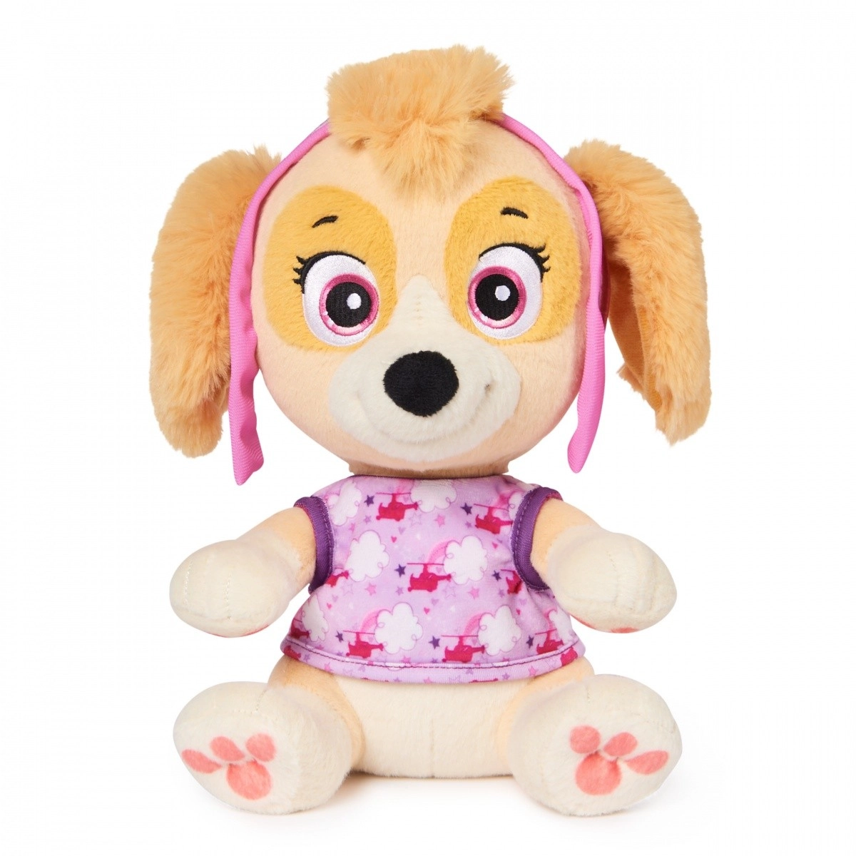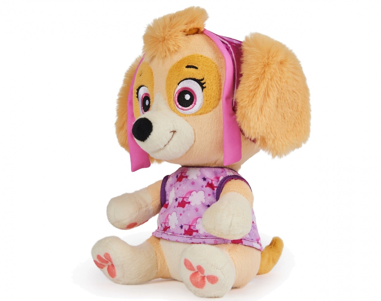Lleva a casa una compañera suave para las buenas noches: Skye de la querida serie La Patrulla Canina. Este peluche destaca por su superficie ultra suave, detalles bordados seguros y un tamaño cómodo para acurrucarse. Gracias a su diseño fiel, Skye se ve como en la serie y los niños se enamorarán de ella al instante.