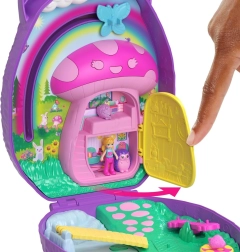 Descubre un mundo mágico de bolsillo con el bolso compacto Polly Pocket Familia de erizos, un set de juego portátil con micro muñecas, animalitos y montones de accesorios. Abre el adorable bolso de erizo y te esperan dos veces más diversión: jardín mágico y guardería de animales. Los niños disfrutarán de elementos interactivos como “dar de comer” al pequeño erizo y su pañal “mojado”, un columpio móvil, una casita de setas y la posibilidad de volar por el cielo gracias a un mecanismo deslizante.