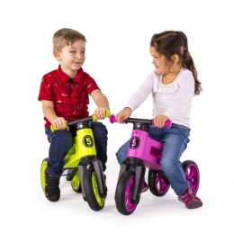 La ligera y estable bicicleta sin pedales 2 en 1 Funny Wheels Rider SuperSport ayuda a los niños desde los 18 meses a desarrollar el equilibrio y la coordinación. Se convierte fácilmente de un triciclo a una bicicleta de equilibrio de dos ruedas, cuenta con asiento regulable en altura 28/30 cm, ruedas silenciosas y sin mantenimiento con superficie blanda, bloqueo de dirección para mayor seguridad y una práctica correa de transporte. Fabricado y certificado en la República Checa con plástico resistente y seguro.