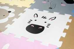 La alfombra está hecha de resistente espuma EVA sin sustancias nocivas, por lo que es amable con los niños y con el suelo. Se limpia con facilidad, se monta y desmonta rápidamente y puede adaptarse al espacio según sea necesario.