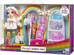 Descubre el mundo de la moda con el set de juego Rainbow High – armario con muñeca, que ofrece infinitas posibilidades de estilismo. Dentro encontrarás una muñeca con cabello arcoíris, conjuntos con perchas, bolsos y zapatos para crear más de 75 looks. Gracias al práctico armario y al perchero con perchas, puedes mezclar y combinar las prendas, exhibirlas y divertirte montando tu propio desfile de moda. El set fomenta la creatividad, la imaginación y el entusiasmo coleccionista de todos los fans de RAINBOW HIGH.