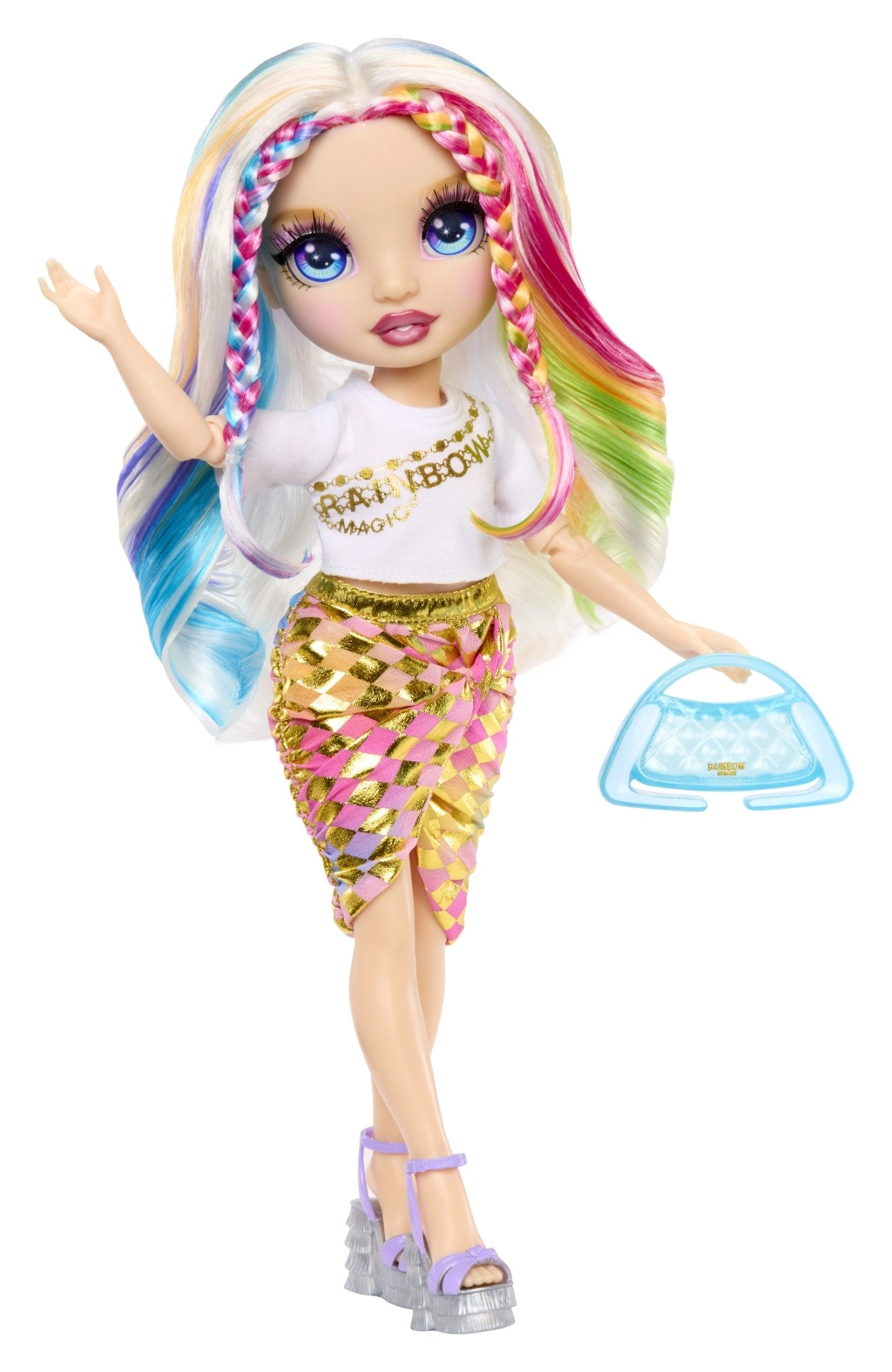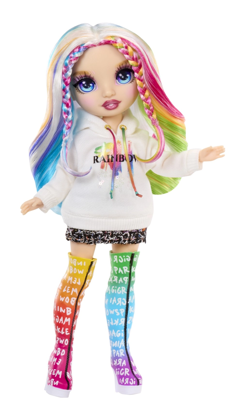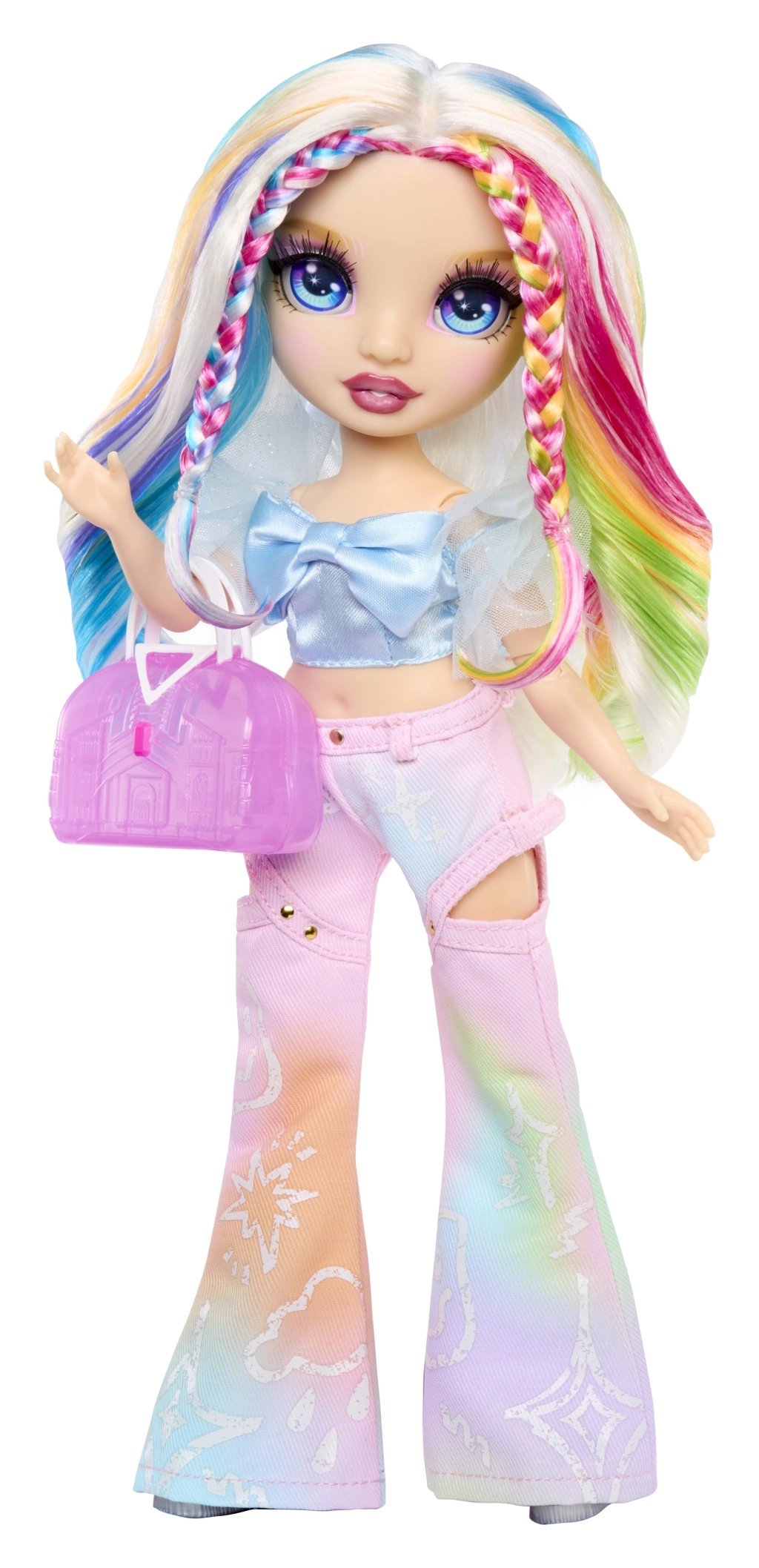 Los detalles arcoíris y la alta calidad garantizan que cada outfit luzca genial tanto en exposición como durante el juego. La muñeca articulada con largo cabello arcoíris se posa con facilidad, por lo que es perfecta para fotografiar, hacer desfiles y divertirse cada día.