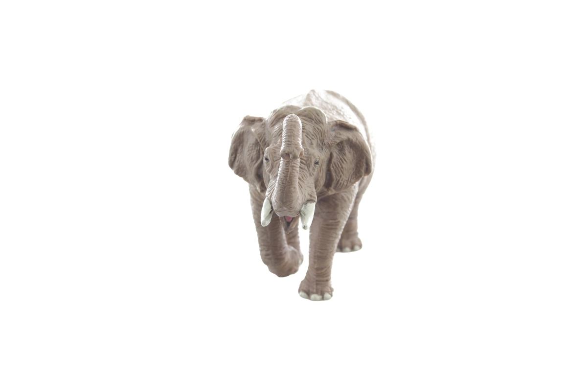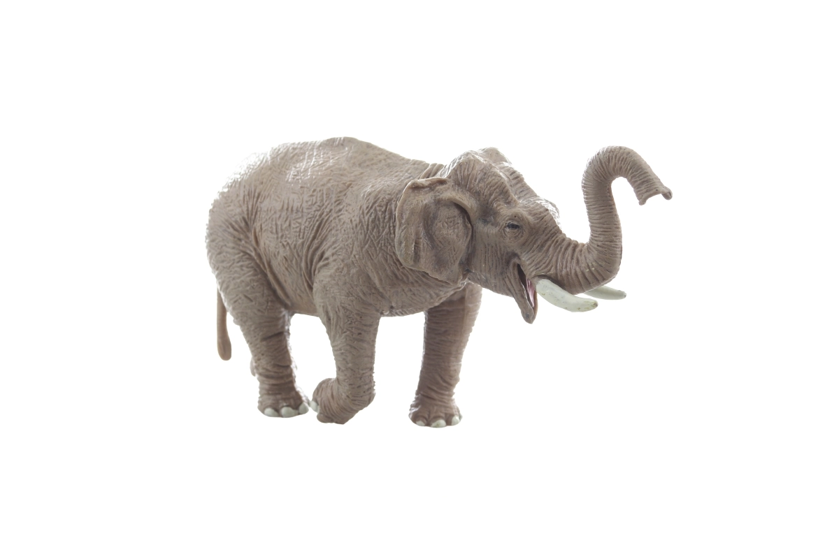 La textura detallada de la piel, la trompa levantada y los colmillos marcados estimulan la imaginación y los juegos educativos.