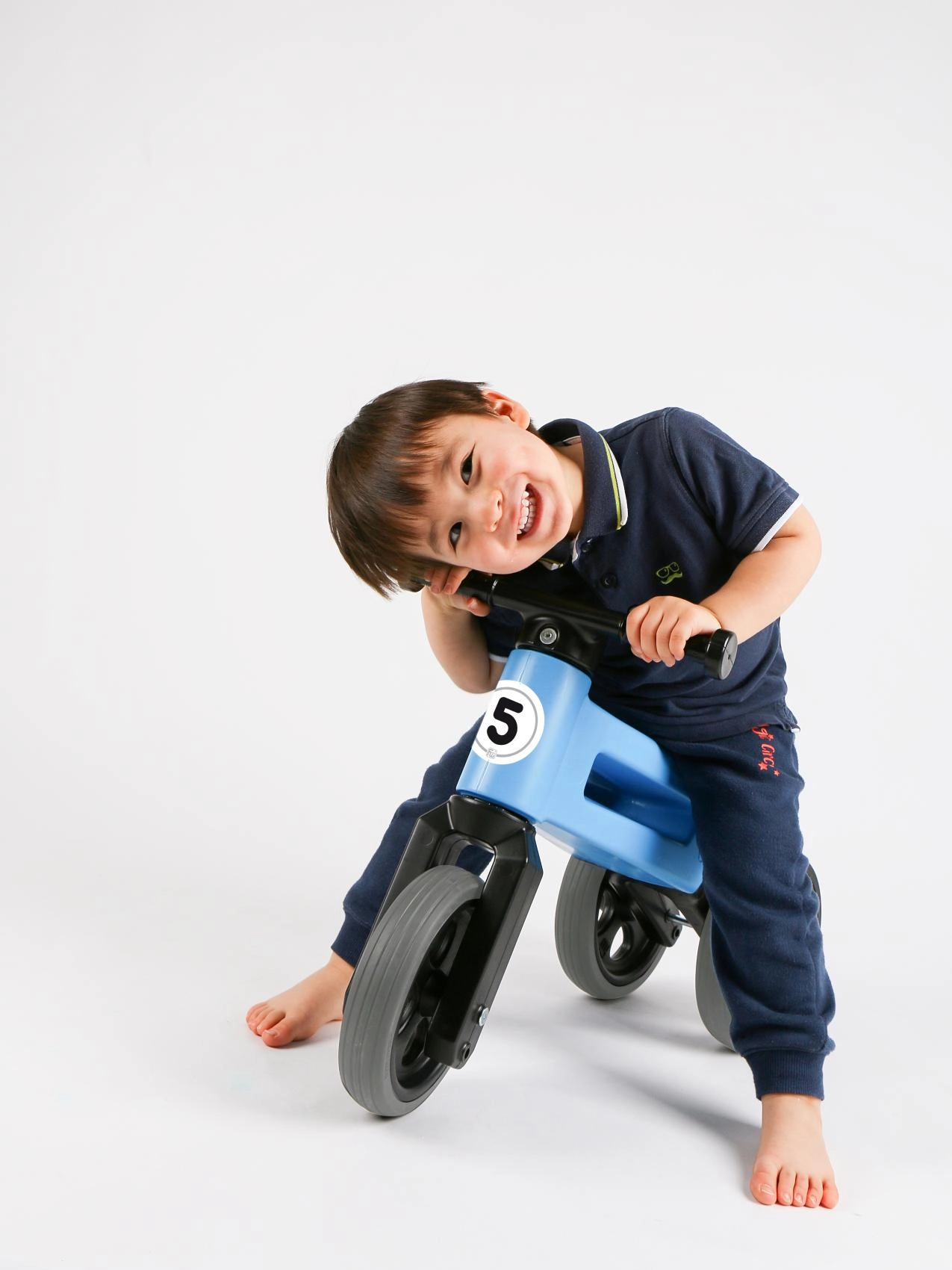 FUNNY WHEELS Rider Sport 2en1 es una opción excelente para las primeras salidas de tu peque. Comienza de forma estable con tres ruedas y más adelante pasa fácilmente a la versión de dos ruedas para entrenar el equilibrio. Gracias a las dos posiciones de altura del sillín, la bicicleta de equilibrio acompaña al niño durante más tiempo y apoya su desarrollo natural de la motricidad y la coordinación.