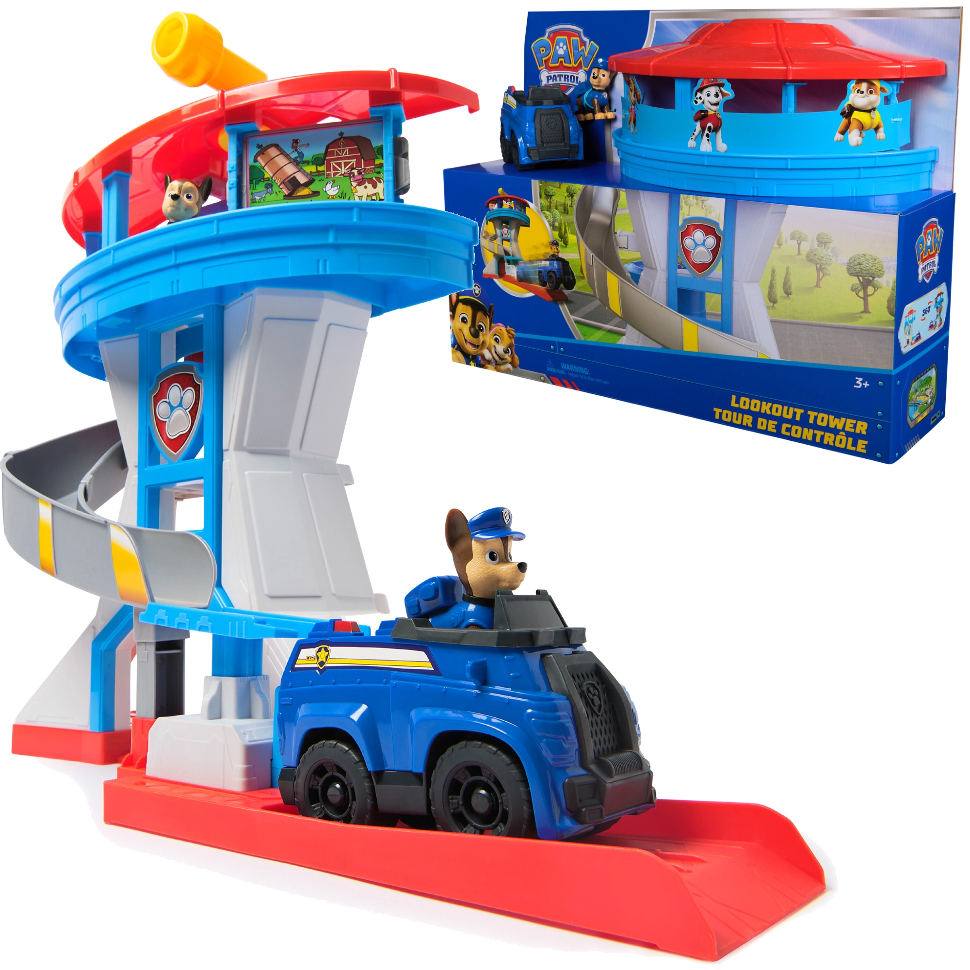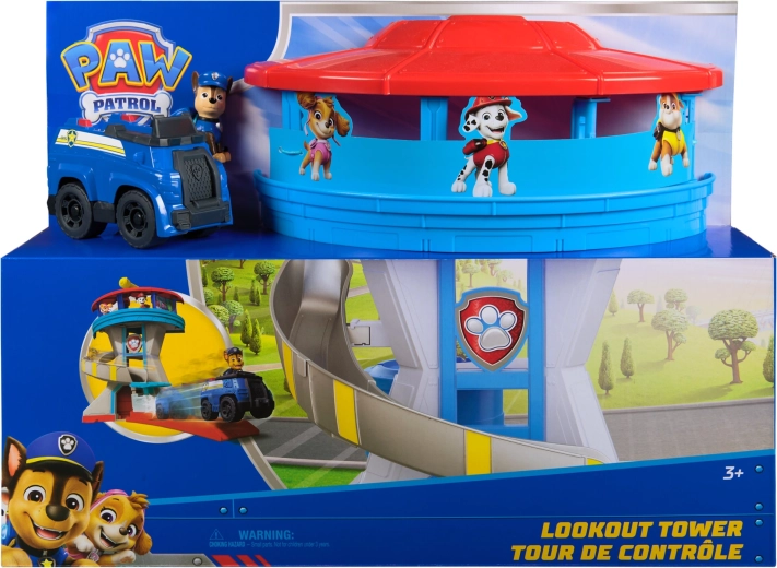 La gran torre de vigilancia es el centro de todas las misiones en Adventure Bay. Los niños pueden recrear fácilmente sus escenas favoritas de la PATRULLA CANINA gracias a sus ingeniosas funciones: el ascensor, al subir, transforma a Chase en modo de acción, el tobogán en espiral lo envía directamente al vehículo y la rampa de lanzamiento inicia la acción de rescate a toda velocidad.