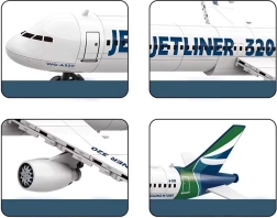 El set de construcción del avión de pasajeros JETLINER 320 es una excelente opción para niños y adultos que aman construir y la aviación. Con 133 piezas cuidadosamente elaboradas montarás un modelo bimotor en elegante color blanco con detalles azul-verdes. Gracias a las pegatinas, el modelo obtiene un aspecto aún más realista y luce genial tanto en la estantería como durante el juego.