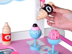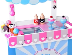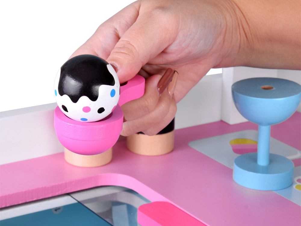 Este adorable puesto de helados de madera en tonos pastel encantará a cualquier pequeño vendedor. Gracias a sus grandes ruedas móviles, amplia encimera de venta y rico conjunto de accesorios, ofrece horas de juego creativo. Los colores no tóxicos y la construcción robusta garantizan una larga vida útil y un juego cómodo tanto en casa como en el jardín.