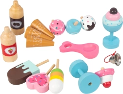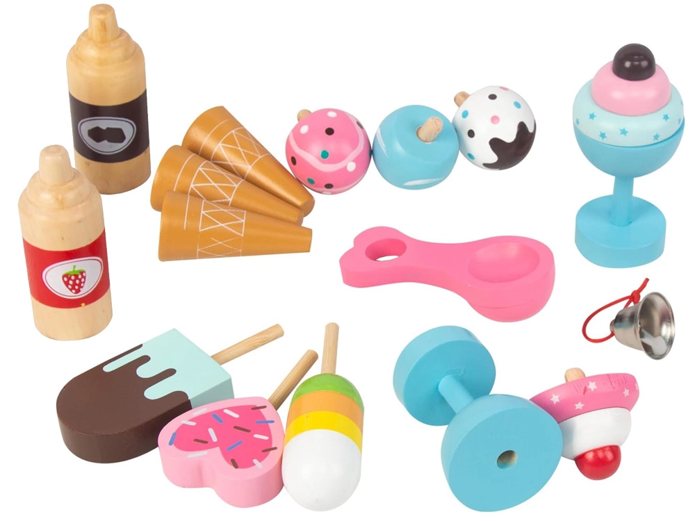 Siropes, copas, cucuruchos, polos y una cuchara para helado: todo para una heladería auténtica, con campanilla y ganchos incluidos.