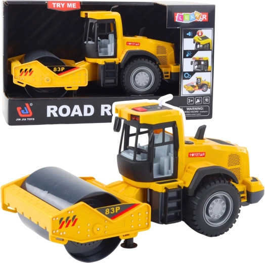 Realista rodillo de obra para pequeños fans de la maquinaria de construcción, ofrece efectos de luz y sonido, tambor de rodillo giratorio y construcción resistente con materiales seguros. Ideal para juego temático en casa y al aire libre, desarrolla la imaginación y la motricidad fina.