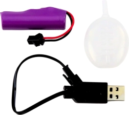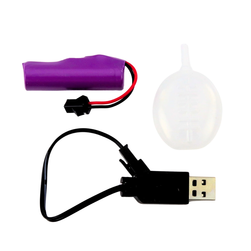 - Batería recargable 3.7 V 500 mAh y carga USB incluidas en el paquete.
