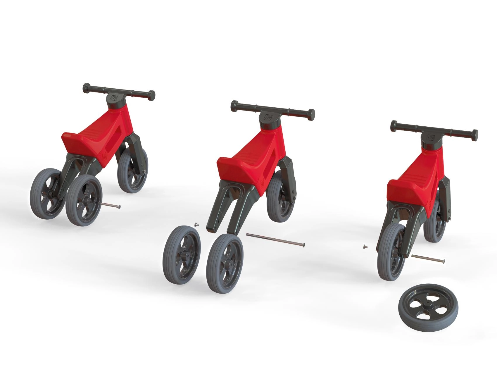 La original bicicleta de equilibrio checa FUNNY WHEELS Rider Sport está diseñada para facilitar a los niños sus primeros pasos hacia el ciclismo. Gracias al sistema 2 en 1, en pocos minutos la conviertes de triciclo a bicicleta de dos ruedas y, con dos posiciones de altura del sillín (diferencia de 3 cm), acompaña al niño en distintas etapas de crecimiento.