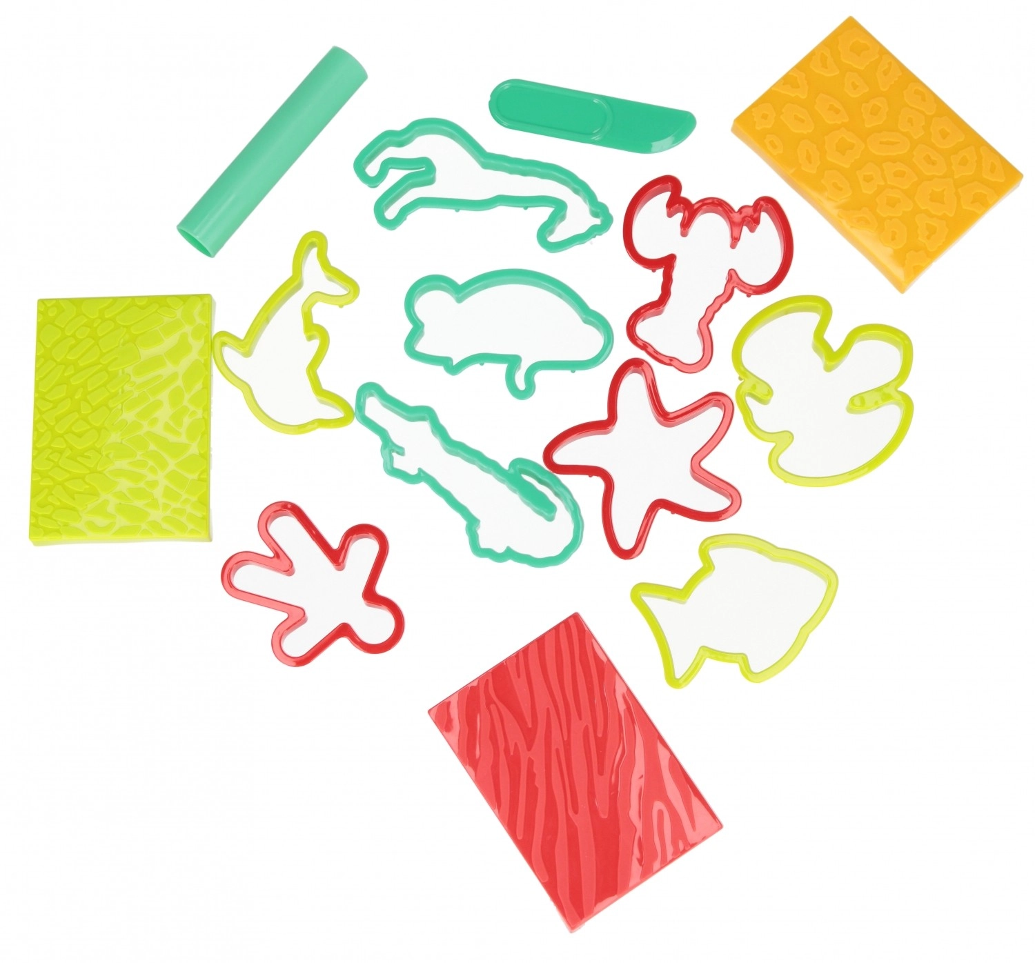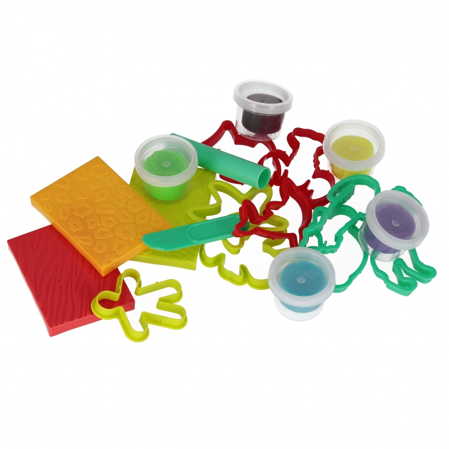 Diversos moldes y elementos texturizados permiten crear animalitos y patrones. Ideal para desarrollar la imaginación y la motricidad fina.