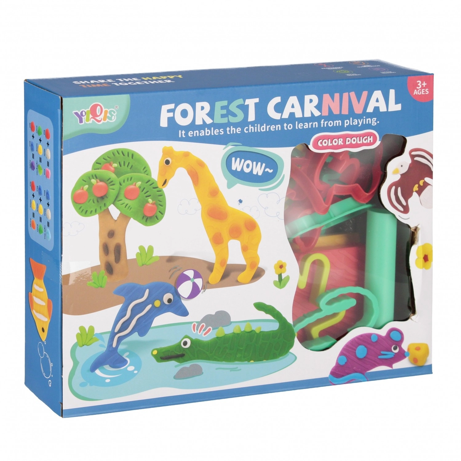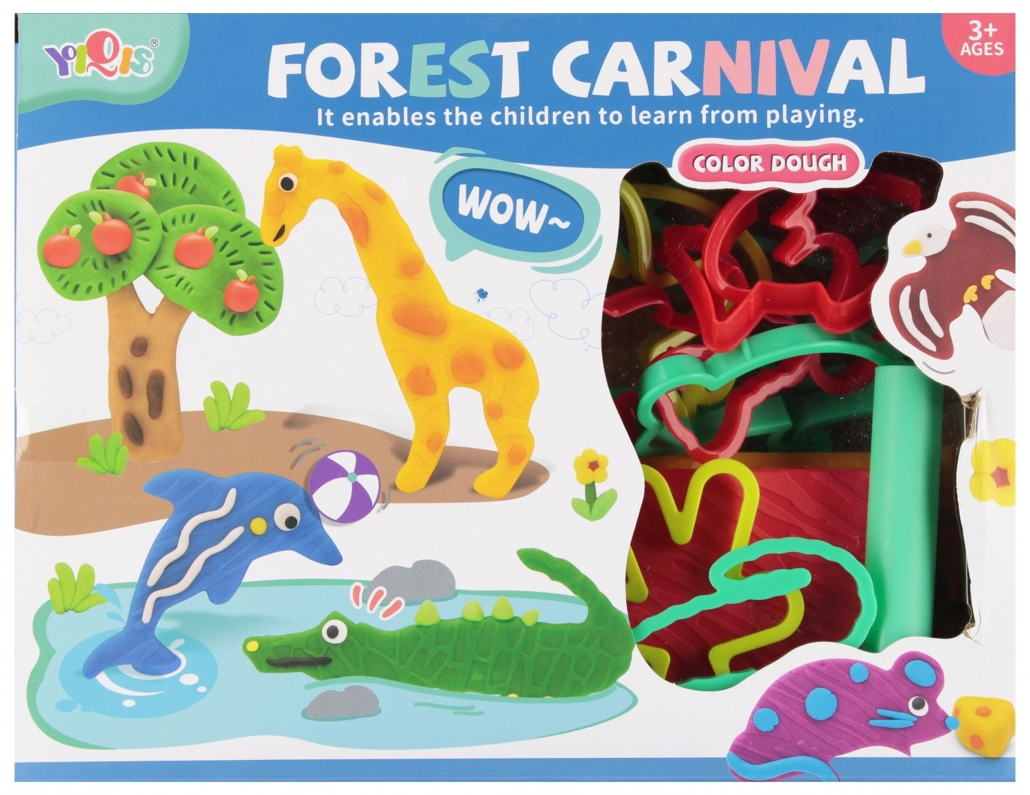 Este alegre set con temática safari ofrece a los niños infinitas posibilidades de creación. Gracias a los colores vivos y a las herramientas fáciles de agarrar, las manitas disfrutarán modelando, rodando, estampando y cortando formas de animales y sus propias creaciones.