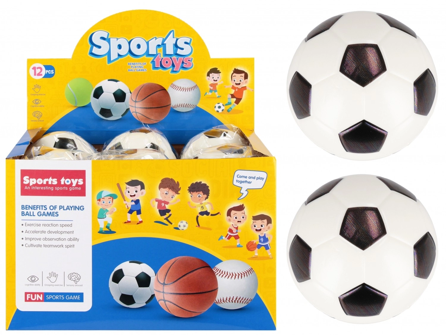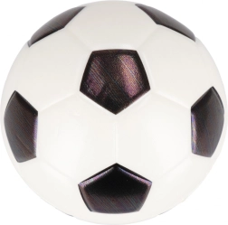 Ligero y suave balón de fútbol de 10 cm de diámetro con diseño clásico en blanco y negro, seguro para jugar en casa y al aire libre. Favorece el movimiento y desarrolla la coordinación, está hecho de resistente espuma EVA y es apto para niños a partir de 3 años.