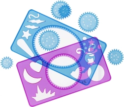 La disposición mejorada de las plantillas y más ruedecillas permiten motivos geométricos y decorativos aún más variados para niños y adultos.