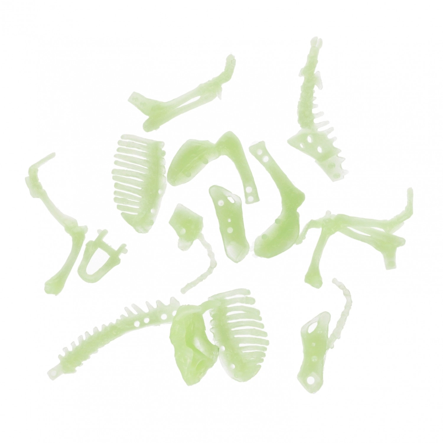 Los pequeños componentes de plástico resistente están moldeados como huesos realistas, desde el cráneo y la columna hasta las extremidades. Tras cargarse con luz, el esqueleto brilla de forma llamativa en la oscuridad, aportando un toque misterioso y estimulando la imaginación infantil. Perfecto como regalo, para la colección o como decoración creativa en la habitación de los niños.