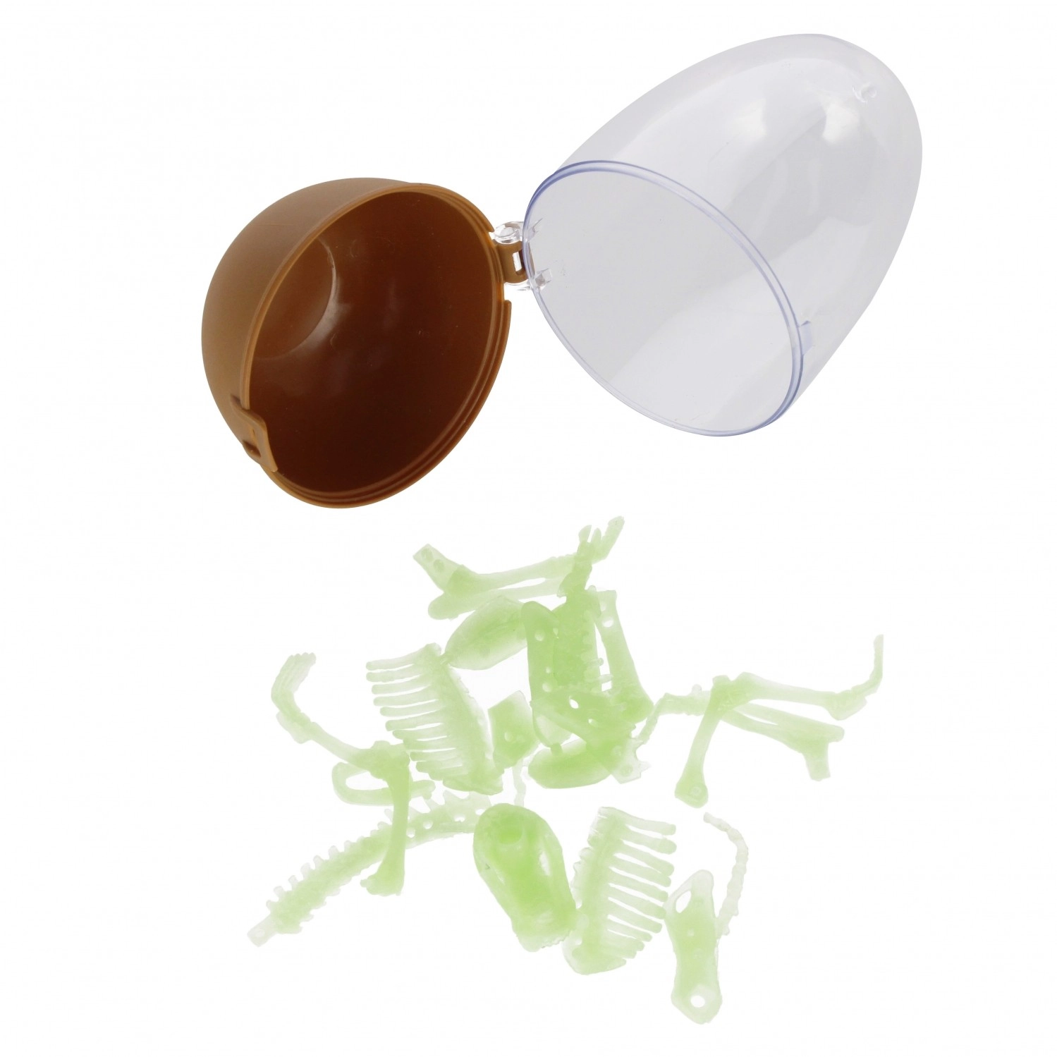 ¡A los pequeños exploradores les encantará montar criaturas prehistóricas! Este set de construcción guarda en un huevo compacto todas las piezas necesarias para ensamblar el esqueleto de un dinosaurio. Las piezas encajan con facilidad y la figura resultante es ligera pero resistente. La parte transparente del huevo permite tener el modelo siempre a la vista.