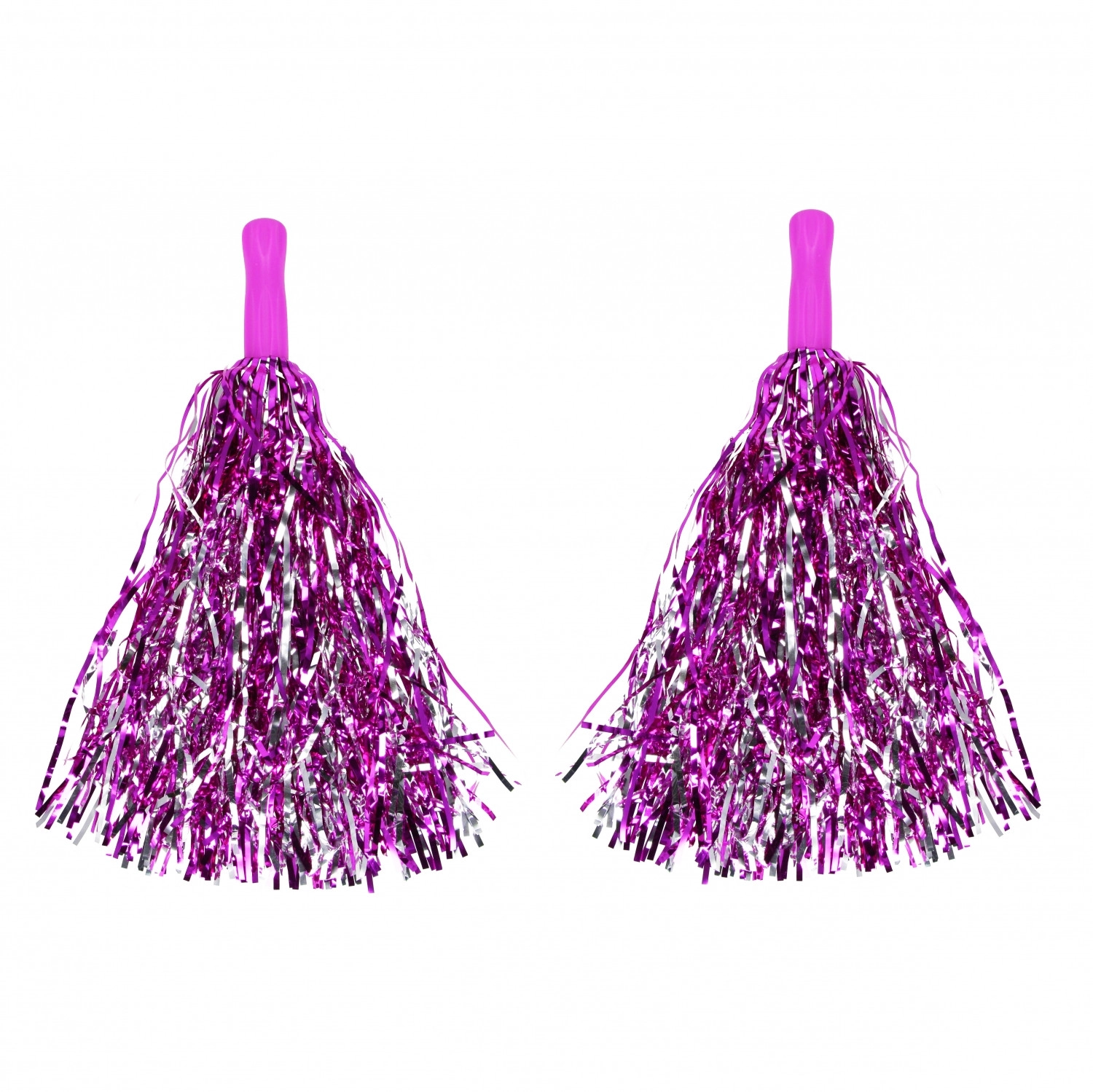 Aporta energía y estilo a tus actuaciones. Estos pompones rosas con flecos metálicos en colores rosa y plata crean un efecto visual impactante al sacudirlos, ideal para celebraciones, eventos escolares, partidos deportivos y coreografías de baile.