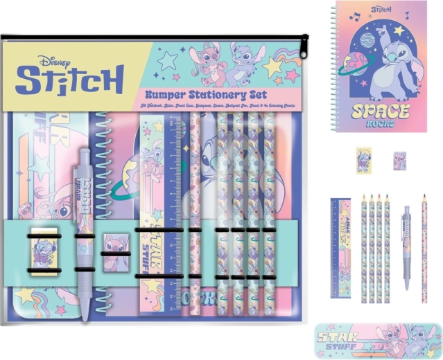 Este gran set escolar con los personajes favoritos de Lilo y Stitch encantará a cualquier pequeño fan. Gracias a su diseño coordinado y a la selección práctica de útiles, la preparación para la escuela será más divertida y ordenada.