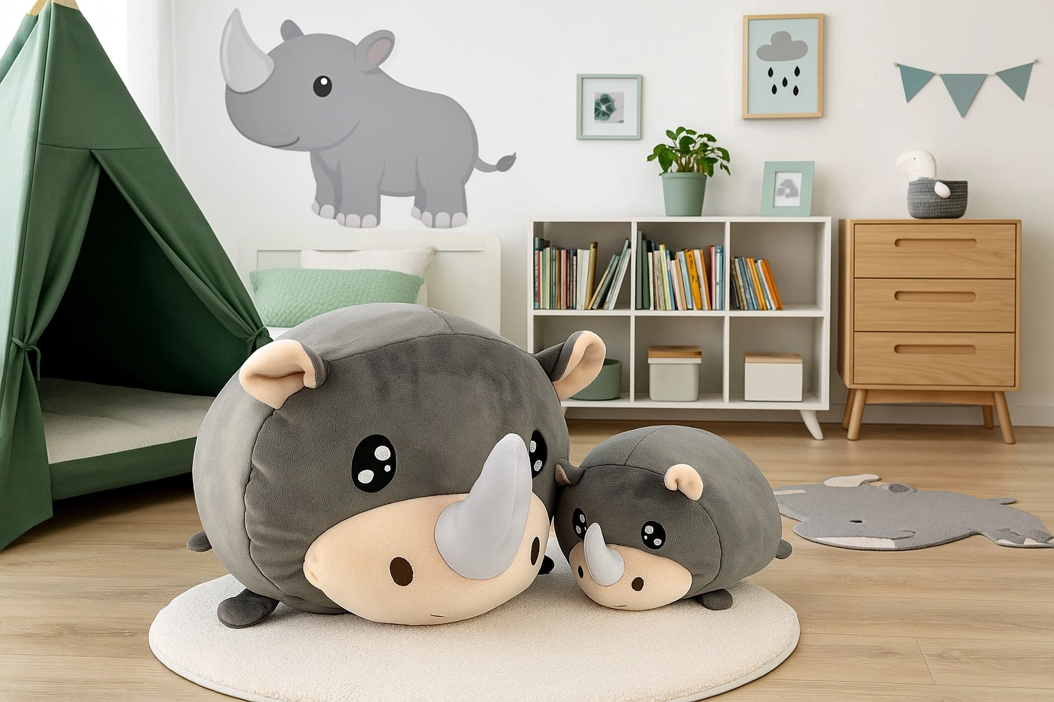 Descubre el encantador set de rinocerontes de peluche MAGIC BABY: una mamá cariñosa y su adorable cría. Ambos rinocerontes tienen una forma redondeada para abrazar cómodamente, detalles bordados en los ojos y la sonrisa y una superficie extremadamente suave que los niños amarán al instante. Gracias a su construcción segura sin piezas duras, son adecuados incluso para recién nacidos.