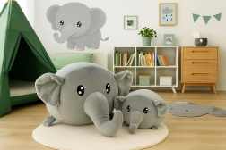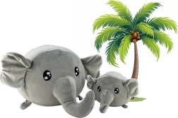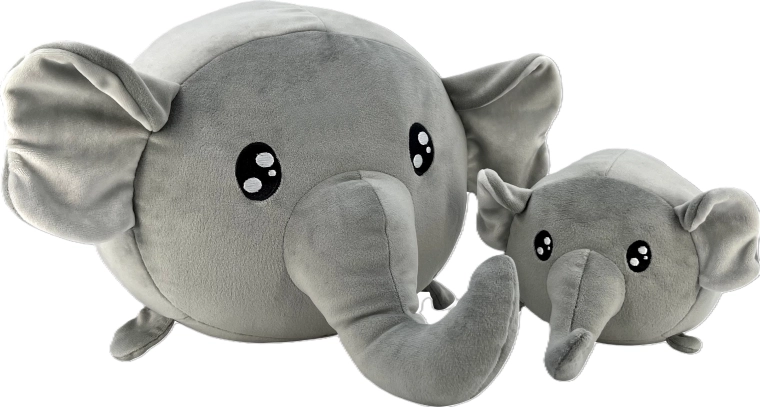 Este set de elefantes de peluche en color gris universal está diseñado para el mimo diario, juegos y descanso. El peluche de alta calidad es suave con la piel infantil y los ojos bordados garantizan un juego tranquilo sin piezas pequeñas. El elefante pequeño (20 cm) es un gran compañero para la cuna, mientras que el grande (40 cm) se convierte en un cojín cómodo para el coche o en una decoración estilosa para la habitación infantil.