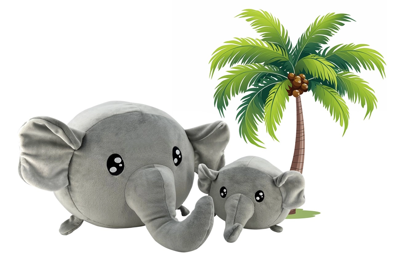 Ambos elefantes están fabricados con materiales resistentes, con relleno y superficie de 100% poliéster, lo que facilita su mantenimiento: basta con lavarlos a máquina a 30 °C. El set viene en una bolsa transparente y es apto desde el nacimiento (0+), por lo que es un regalo perfecto para bebés y niños más mayores.