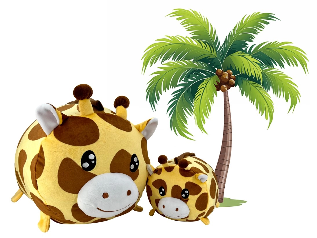 El set de dos jirafas de peluche bordadas aporta abrazos suaves y una decoración adorable al cuarto infantil. Su forma redondeada, el peluche delicado y los seguros detalles cosidos aseguran un acurruco cómodo incluso para los bebés más pequeños, mientras que los niños mayores apreciarán la jirafa grande como cojín para el coche o para viajes.