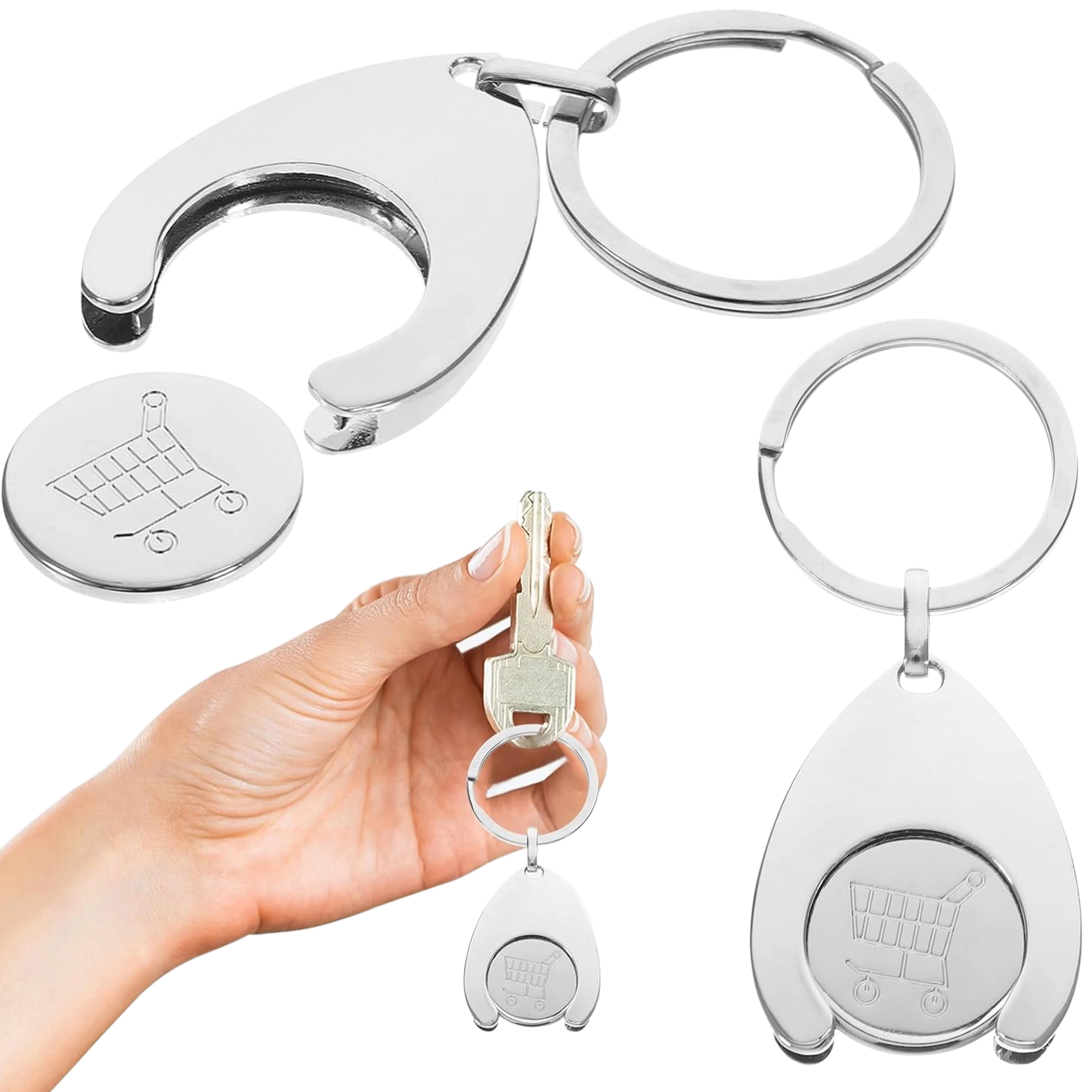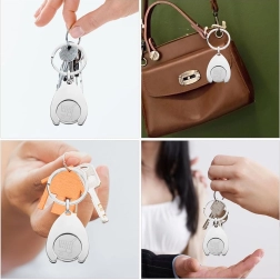 Solución inteligente 2 en 1: elegante llavero metálico con ficha extraíble para liberar el carro de la compra. Gracias al aro robusto, se engancha fácilmente a las llaves, al bolso o a la mochila, ofreciendo acceso rápido al carro sin moneda.