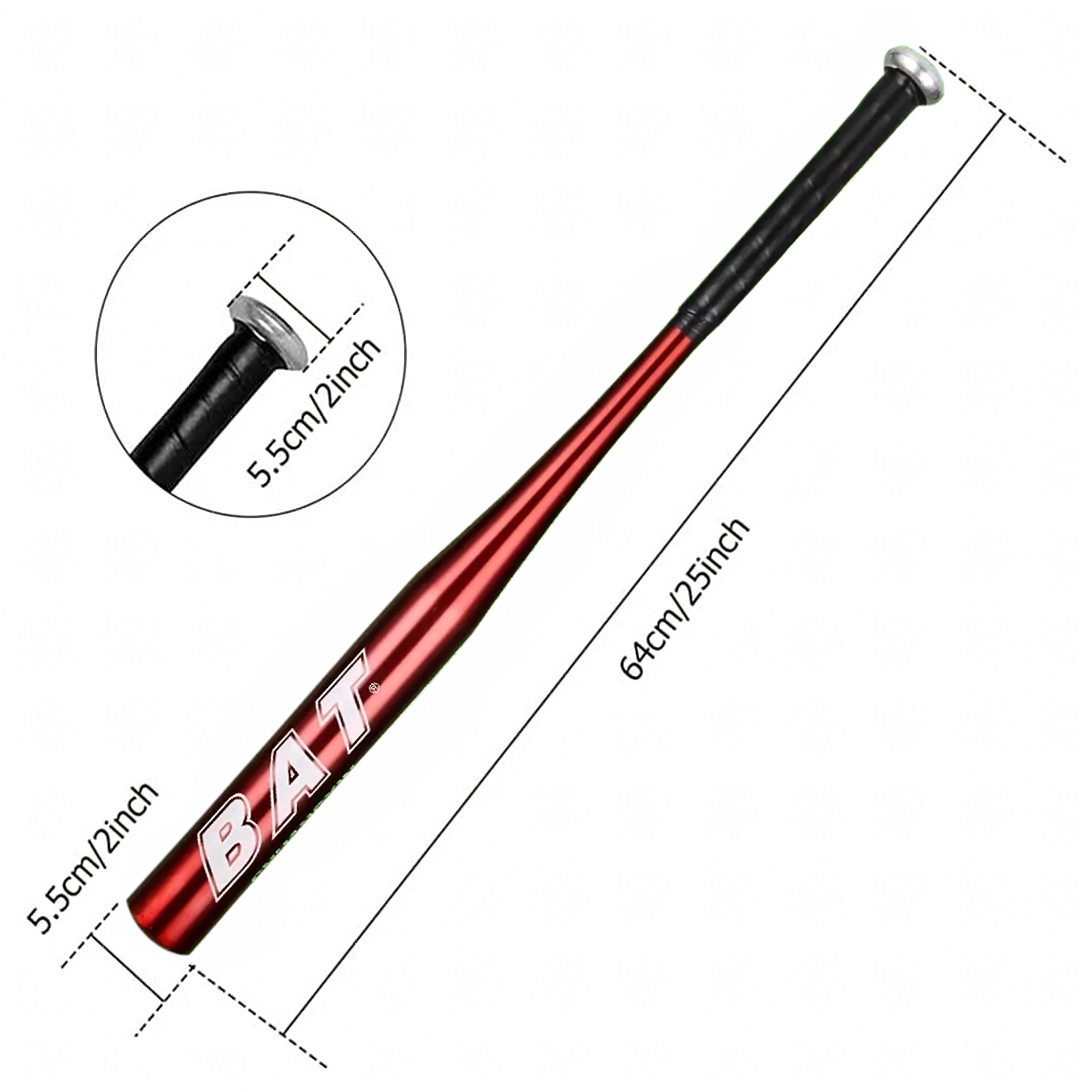 Este bate de aluminio en un atractivo color rojo es una excelente opción para principiantes y jugadores recreativos. Gracias a su bajo peso y diseño equilibrado, podrás acelerar fácilmente el swing y lograr golpes estables y contundentes. La longitud de 25" (64 cm) es adecuada para jóvenes y adultos que prefieren un bate más corto y maniobrable.