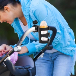 Disfruta de la comodidad en paseos y actividades deportivas. Este portavasos universal se fija fácilmente al manillar o asa y, gracias a su firme abrazadera de tornillo y soportes laterales flexibles, sujeta de forma fiable botellas, vasos y biberones de distintos diámetros.