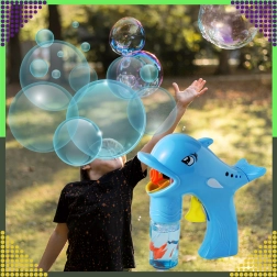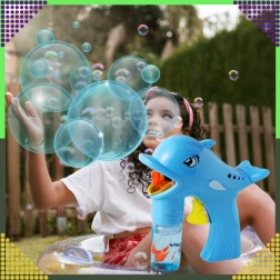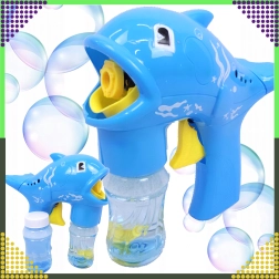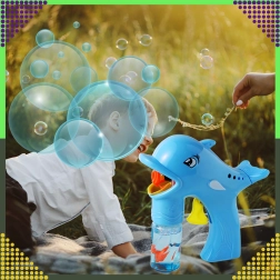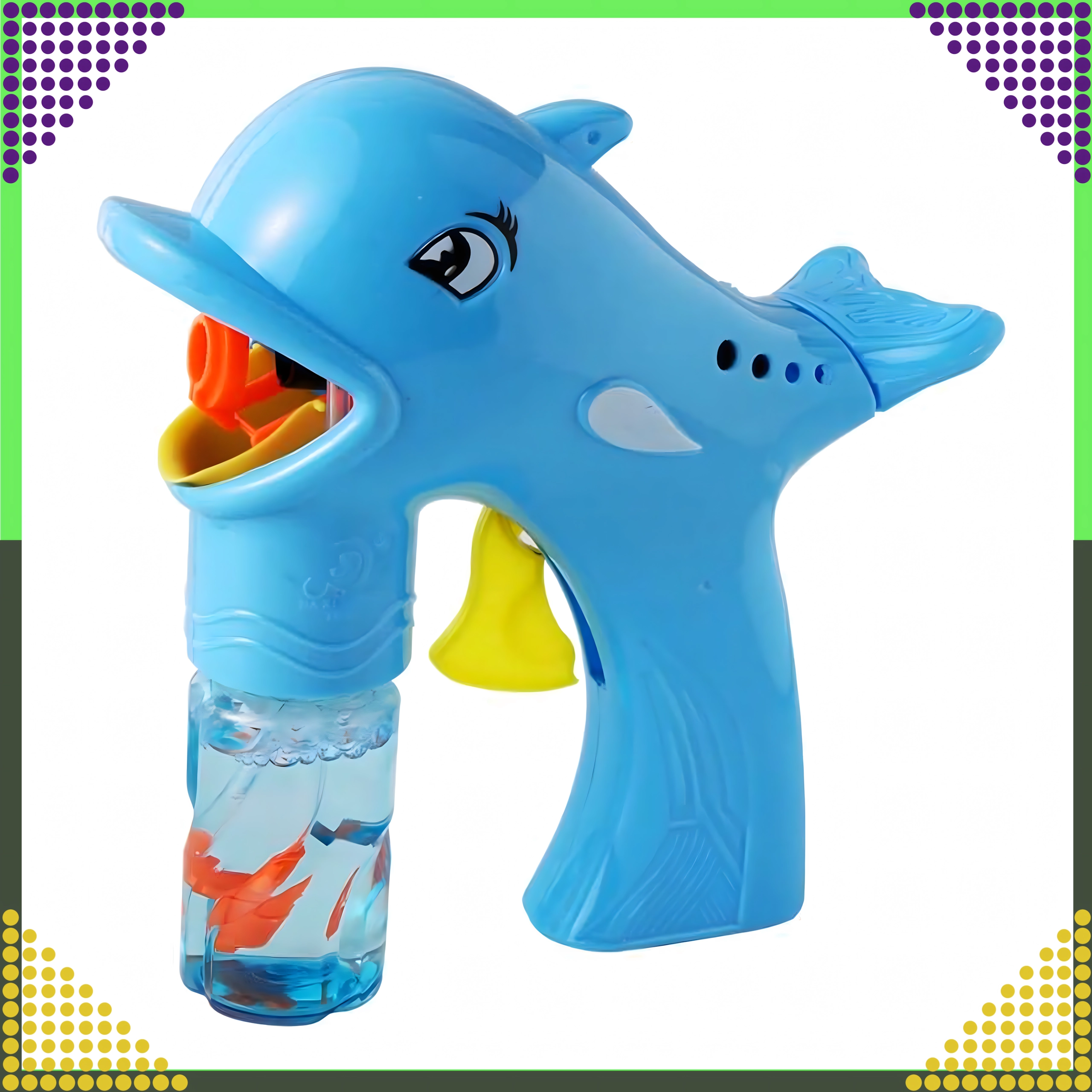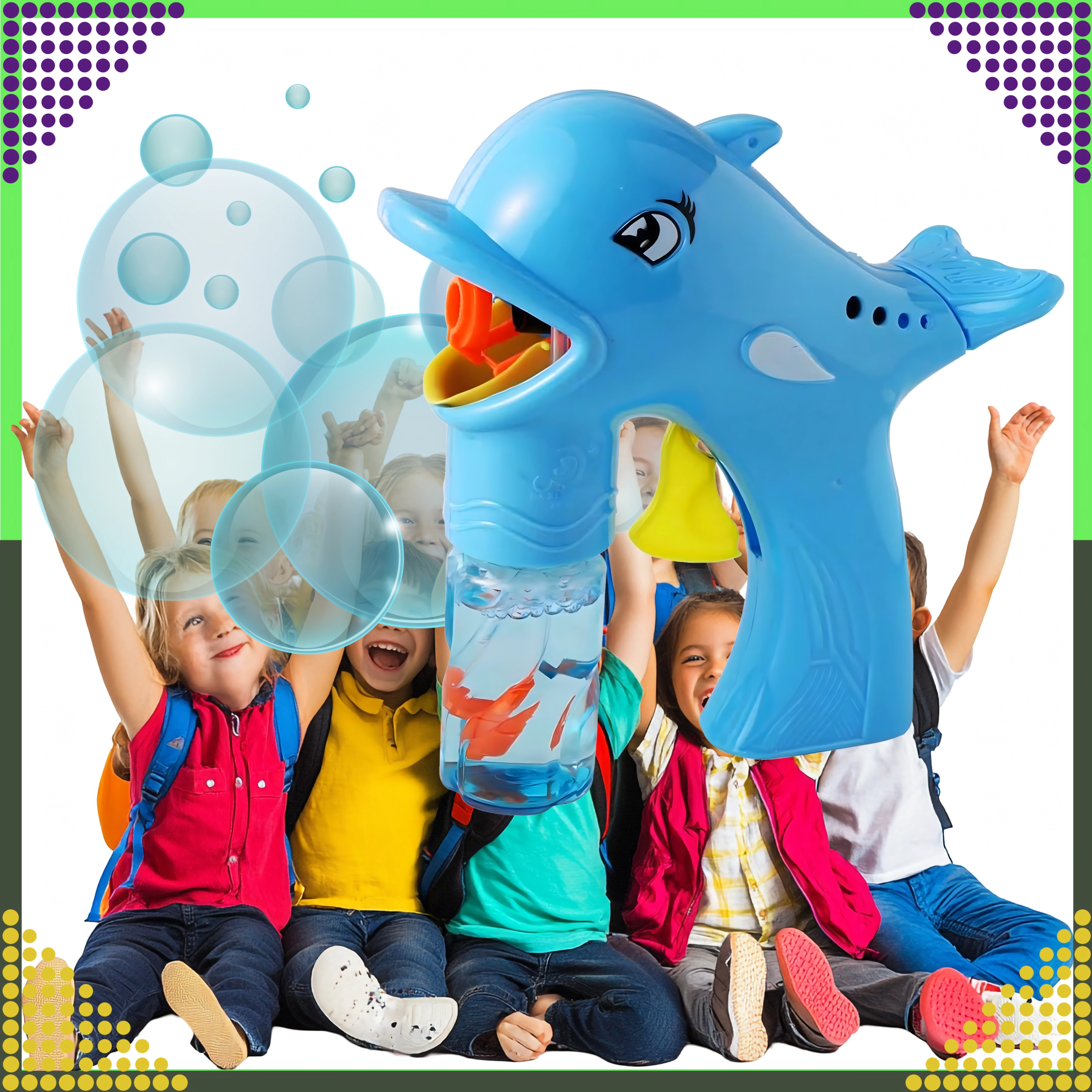¡Ilumina cada tarde infantil con diversión de burbujas! La pistola de pompas con forma de delfín, tras acoplar la botellita con la solución, lanza decenas a cientos de burbujas en pocos segundos. Solo hay que enroscar la recarga, apretar el gatillo y disfrutar de un espectáculo arcoíris al aire libre o en interiores.