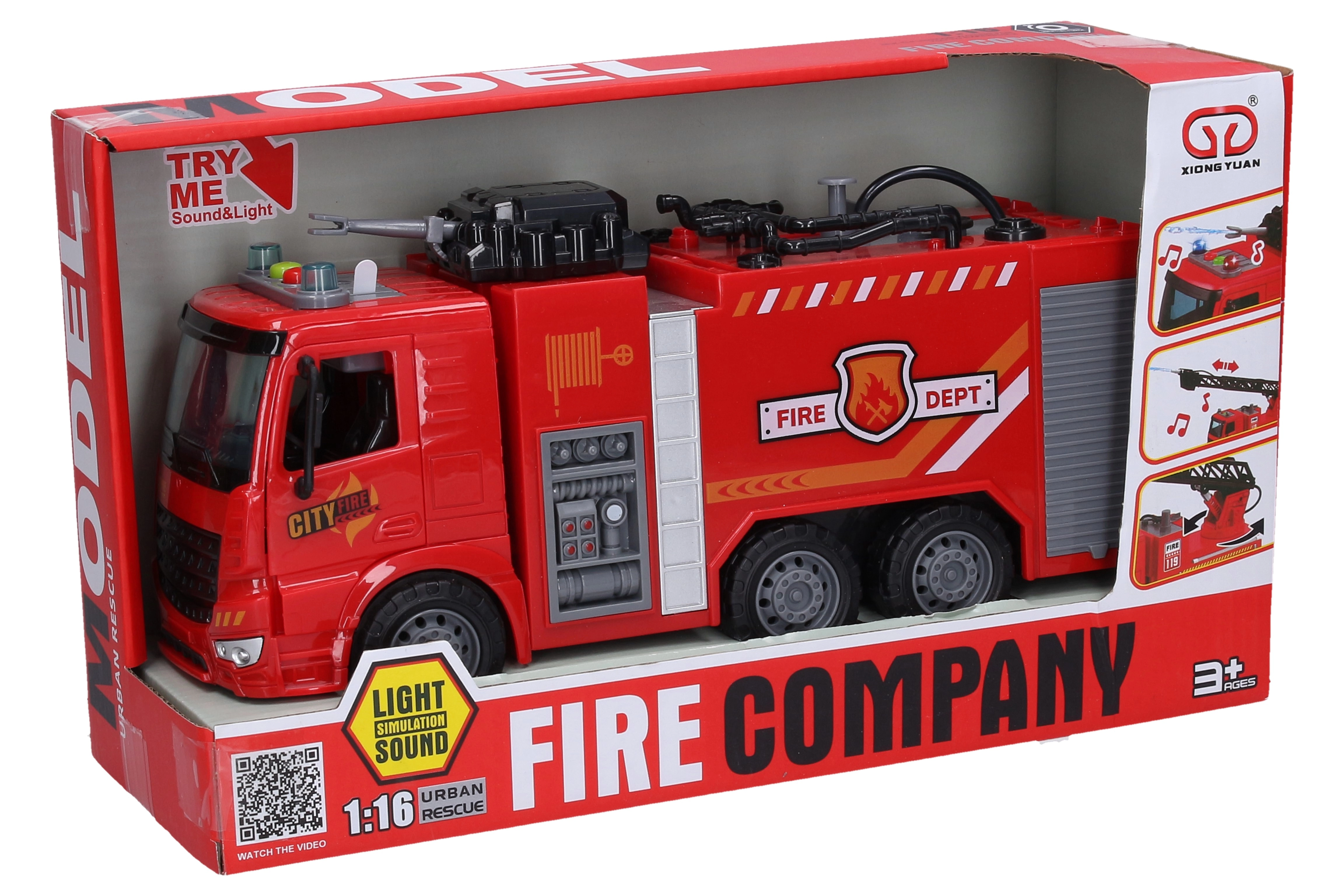 Descubre una diversión realista con este camión de bomberos de 30 cm, que ofrece efectos de luz y sonido, pulverización de agua y un manejo sencillo mediante botones en la cabina. Gracias al mecanismo de inercia, el camión se pone en marcha suavemente y el depósito de agua integrado permite un juego de acción sin necesidad de accesorios adicionales.