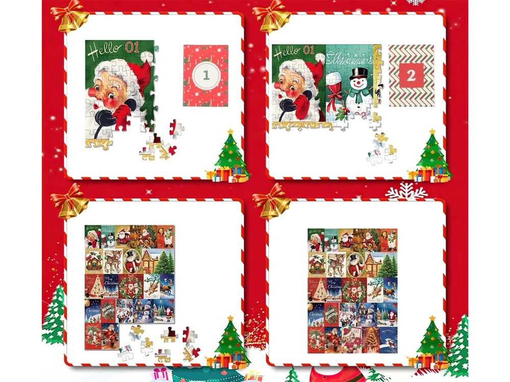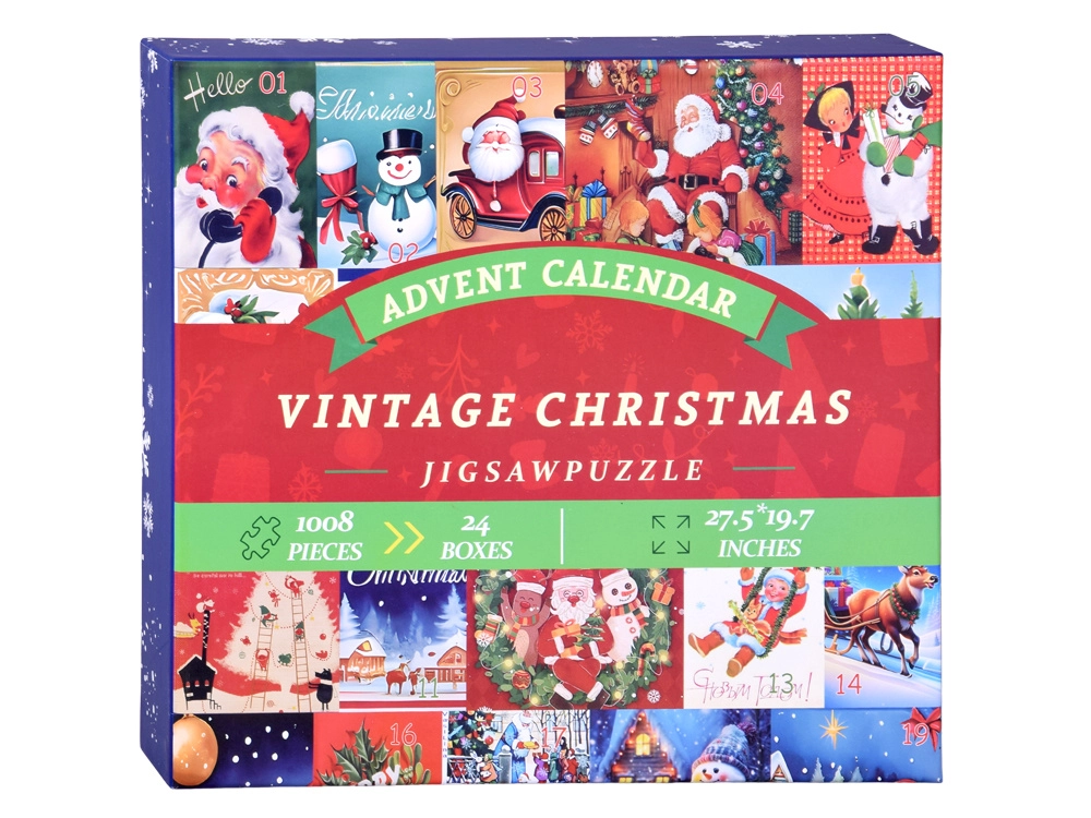 Este calendario de Adviento combina la ilusión de la cuenta atrás hasta Nochebuena con la relajante diversión de armar rompecabezas. Cada día abre una de las 24 ventanitas y obtiene un pequeño puzle con un motivo vintage único. Al completar todos, obtendrá una imagen conjunta de 70 × 50 cm que complementará maravillosamente la decoración festiva.