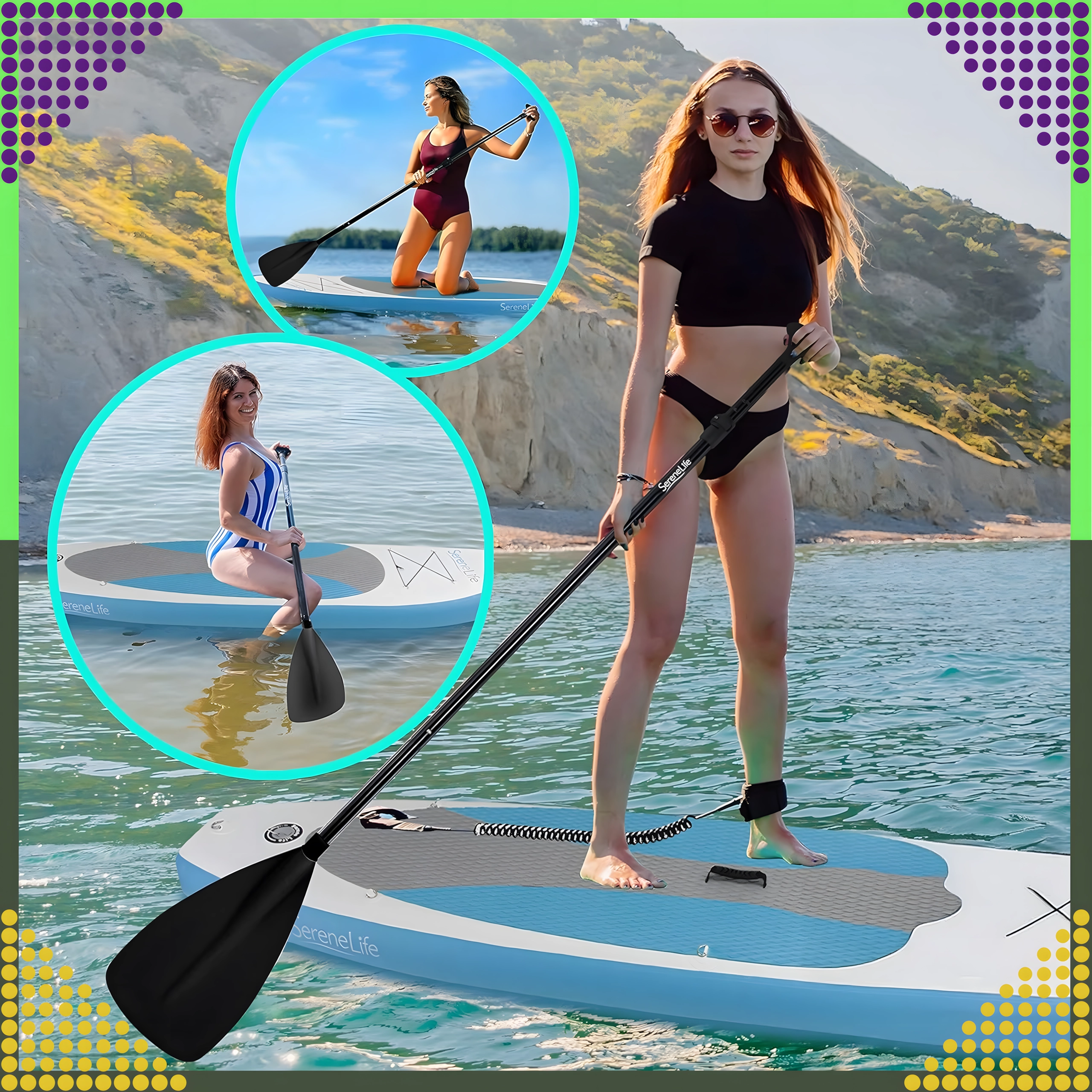 Gracias al diseño plegable de 3 piezas, la pala se guarda fácilmente en la mochila junto a la tabla. La pala perfilada garantiza una brazada eficiente y una trayectoria estable, mientras que la empuñadura T-grip ofrece un agarre seguro para niños, adolescentes y adultos.