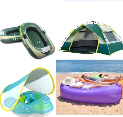- Colchones inflables, piscinas, juguetes inflables, botes, equipo de exterior