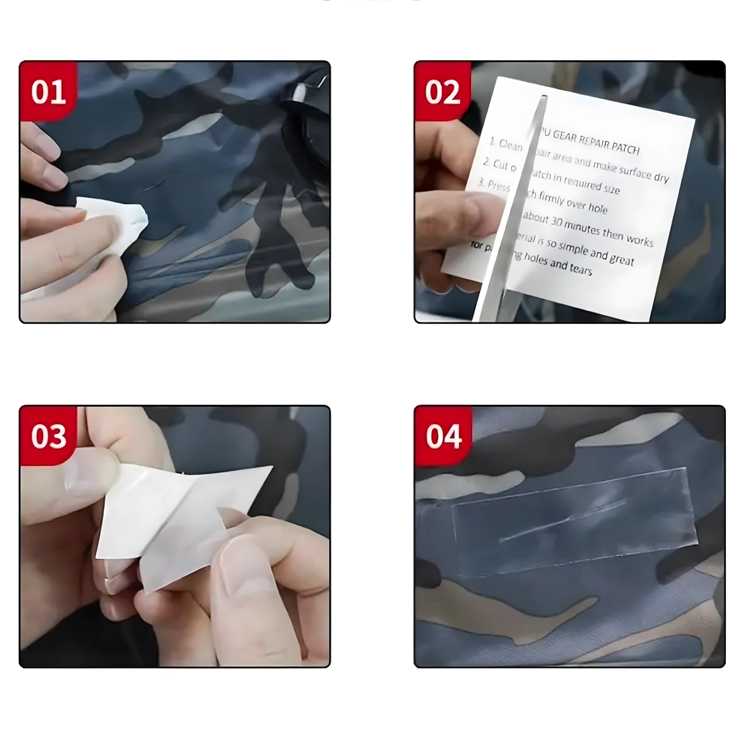 Los parches transparentes se integran con la superficie y crean un refuerzo duradero sin aspecto llamativo. Ideales para tejidos y PVC.
