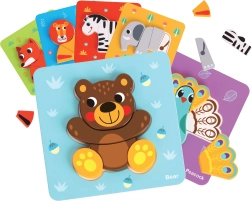 El set está fabricado en madera de calidad con énfasis en la durabilidad y la seguridad. Gracias a los múltiples motivos y combinaciones de colores, los niños desarrollan de forma natural el vocabulario, la clasificación y las habilidades cognitivas tempranas, de manera lúdica y sin frustraciones.