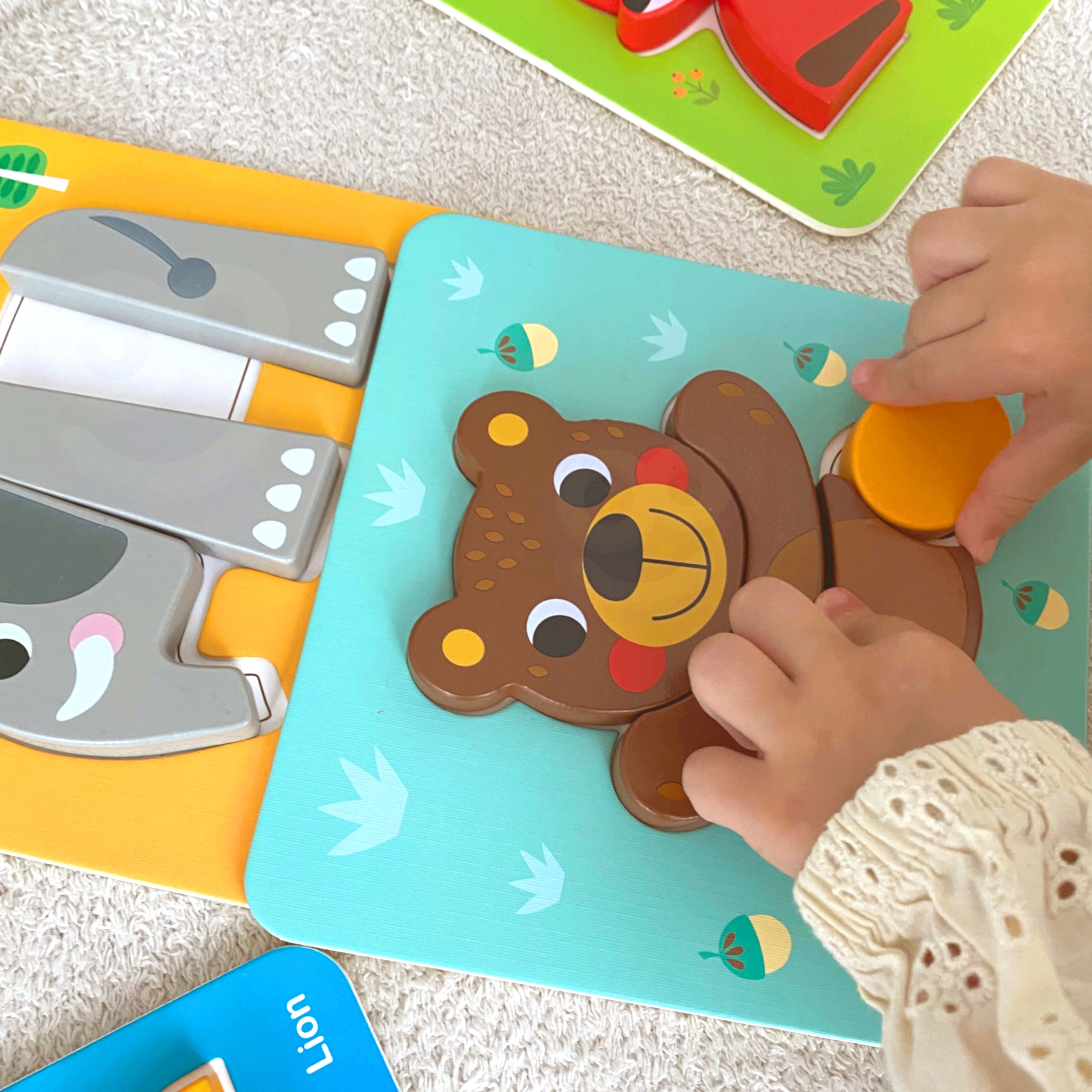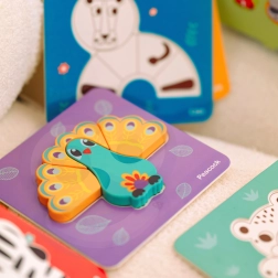 Los coloridos motivos de animales favorecen el reconocimiento de colores y formas, así como el desarrollo del vocabulario. Los niños practican la coordinación mano-ojo y la paciencia.