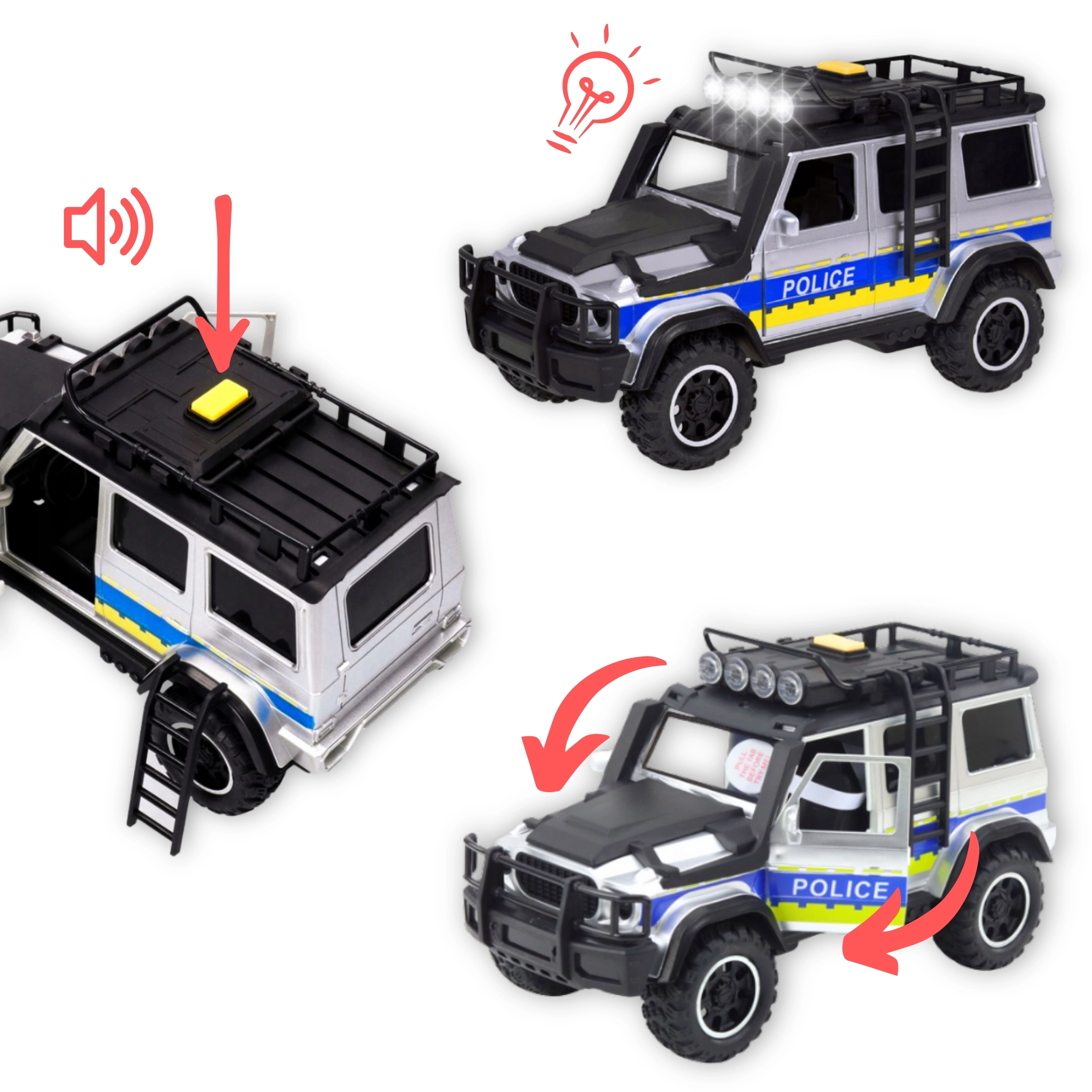 Un regalo ideal para niños a partir de 3 años que aman la policía, los coches y las misiones de rescate. La estética negro y azul reproduce fielmente los colores de servicio y el plástico de calidad garantiza una larga durabilidad del juguete.