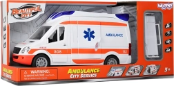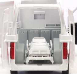 Esta ambulancia, elaborada con gran detalle, aporta al juego infantil la auténtica atmósfera de una operación de rescate. Gracias a las luces intermitentes en el techo y a sonidos como sirena, claxon, marcha atrás y arranque del motor, cada recorrido está lleno de tensión y realismo. Las puertas delanteras y traseras abatibles y el techo abatible permiten un acceso sencillo a la cabina y al compartimento de rescate.