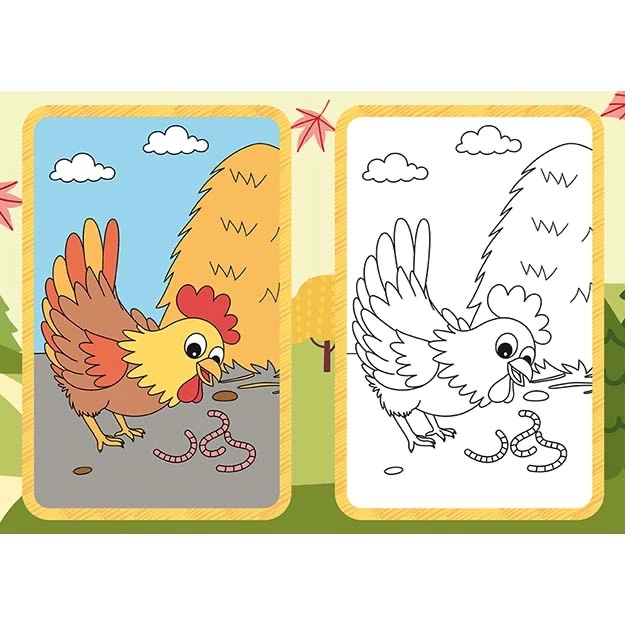 Un divertido libro para colorear en formato A5 con temática de granja que encantará a los pequeños artistas. Incluye 9 ilustraciones en blanco y negro para colorear y 9 modelos a color para una inspiración sencilla y el desarrollo de la creatividad.