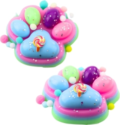 - 1× gniotek XXL; figura decorativa de piruleta en la superficie; espolvoreado de bolitas de colores y confeti
