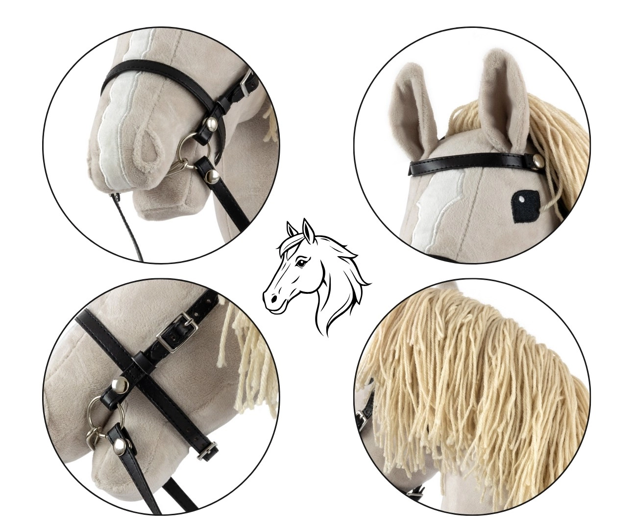 Las riendas largas y la cabezada ayudan a los niños a guiar al caballito y refuerzan la sensación de una monta real.