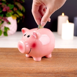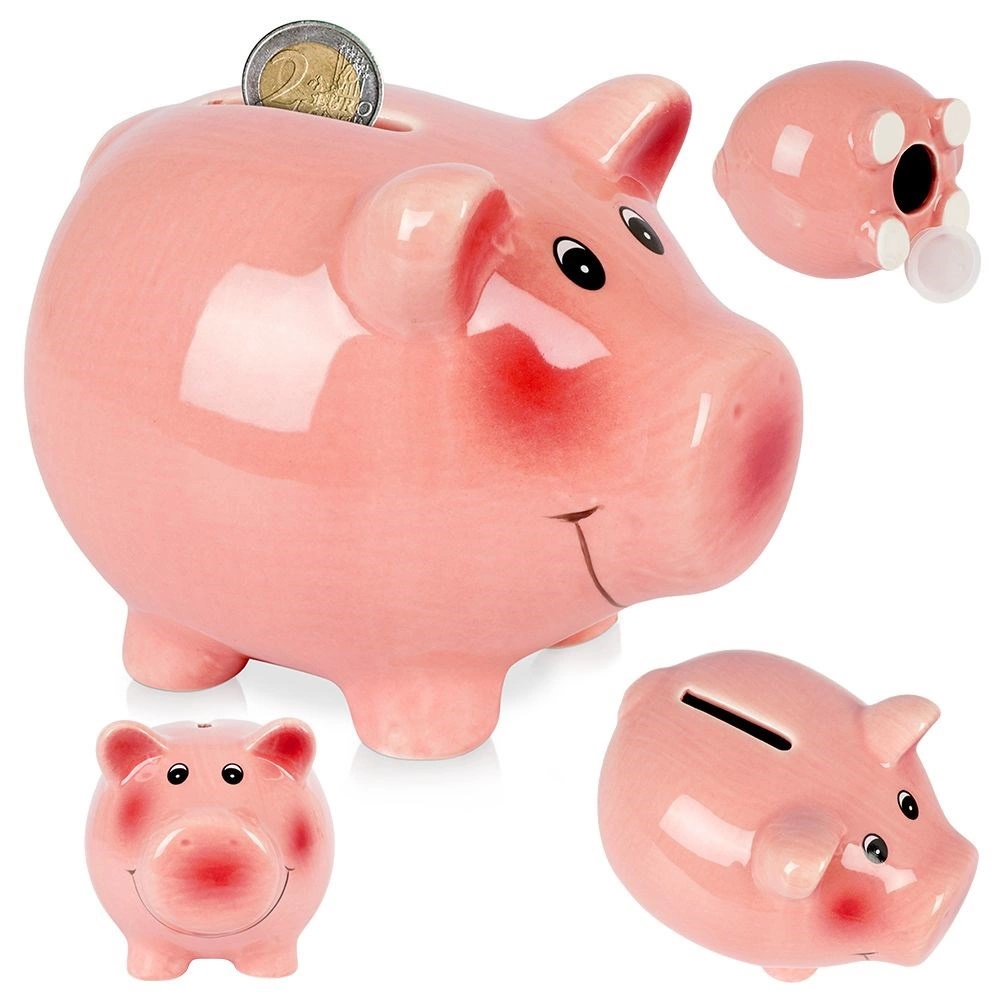 Empieza a ahorrar con una sonrisa. El cerdito rosa de cerámica combina un acabado de calidad con una apertura práctica, para guardar el dinero con seguridad y retirarlo con facilidad. Gracias a su diseño atemporal, encaja en la habitación infantil, la oficina o el salón.