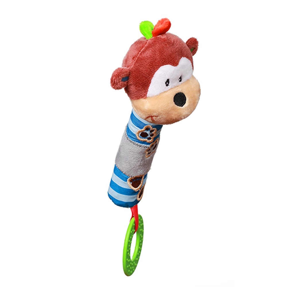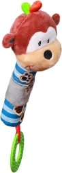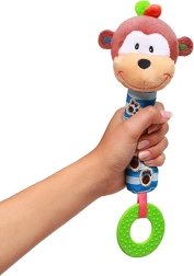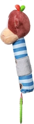Este juguete de peluche con silbato y mordedor BABY ONO con forma de simpática monita está diseñado para manos pequeñas. Al agitarlo o presionarlo emite un suave sonido de silbato que anima a los niños a explorar. El mordedor texturizado alivia las encías sensibles durante la dentición.