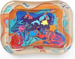Gracias a sus elementos interactivos, la alfombra desarrolla la percepción visual y espacial y fomenta la creatividad. Los colores vivos, los contrastes nítidos y el suave entorno acuático aportan una estimulación sensorial relajante. Para aliviar el malestar abdominal, se puede verter agua tibia en el interior y ofrecer al bebé un apoyo agradable durante el tiempo boca abajo.