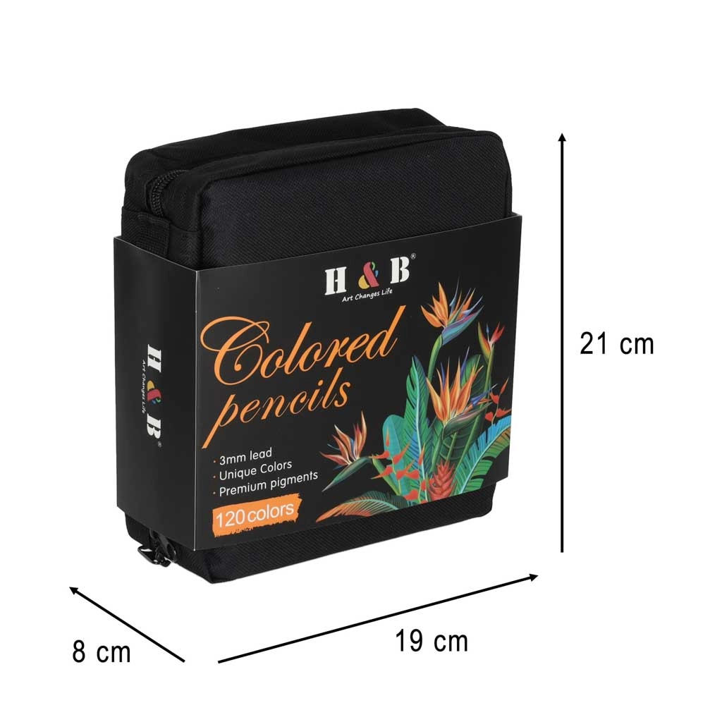 Descubre el set completo de 120 lápices de colores en un práctico estuche con cremallera. Ofrece una amplia selección de tonos para dibujar, colorear y bocetar. Incluye goma y sacapuntas, todo ordenado para facilitar el transporte y la rápida elección del color.