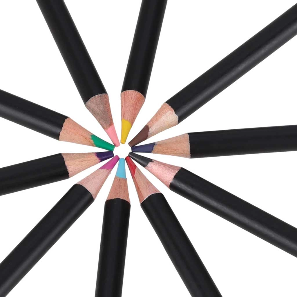 Este completo set de lápices es ideal para niños, estudiantes y adultos creativos. Los lápices de madera robusta con lacado negro y extremos coloreados garantizan un agarre cómodo y trazos precisos. El estuche con cremallera mantiene todo en su sitio y protege los lápices durante el transporte.