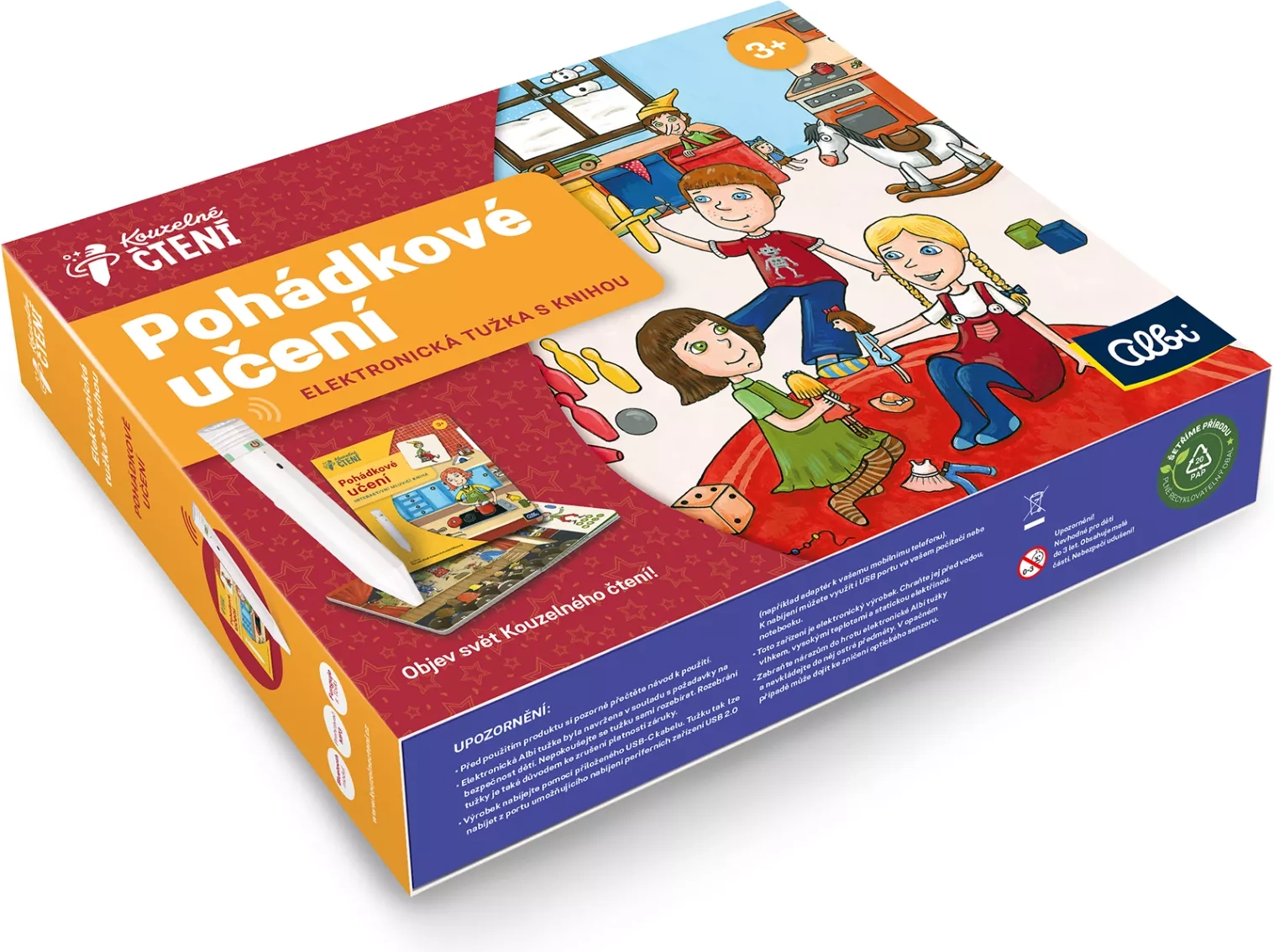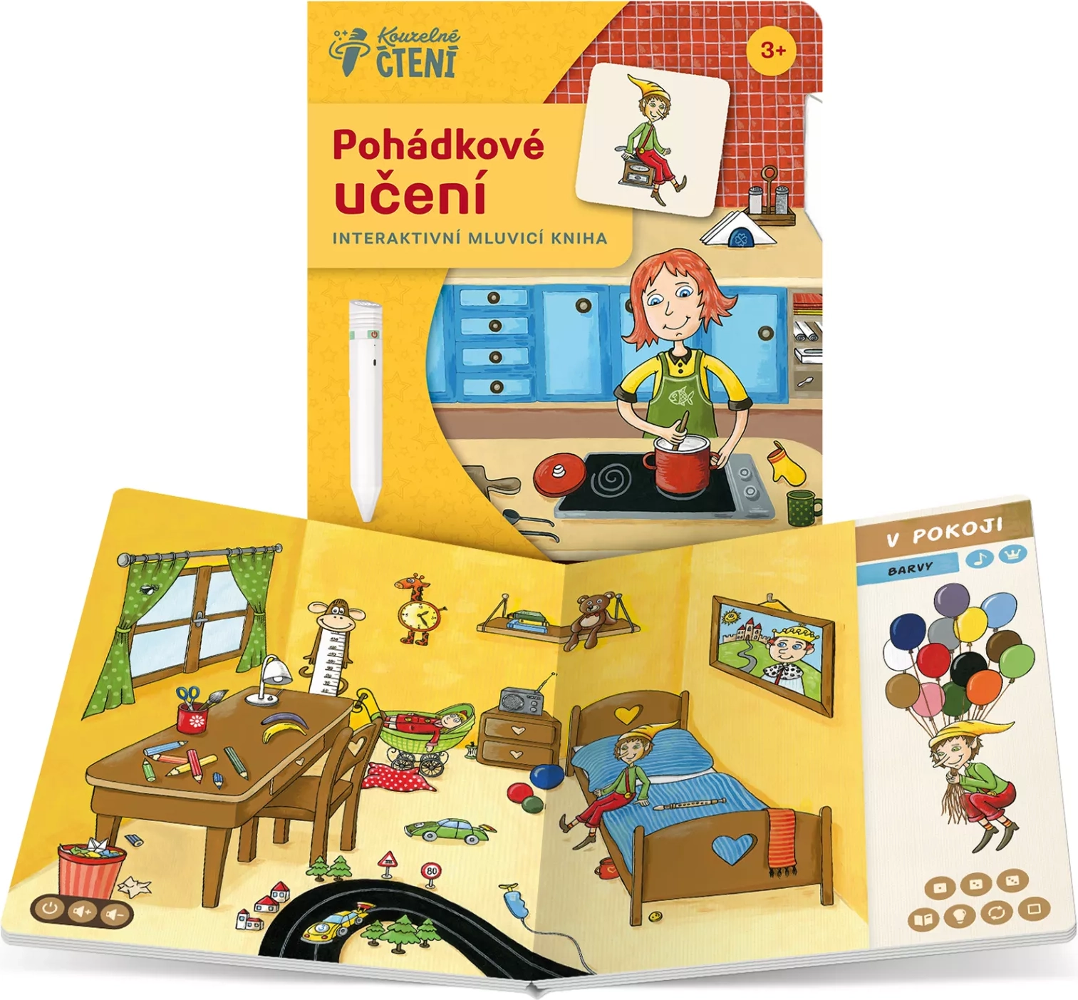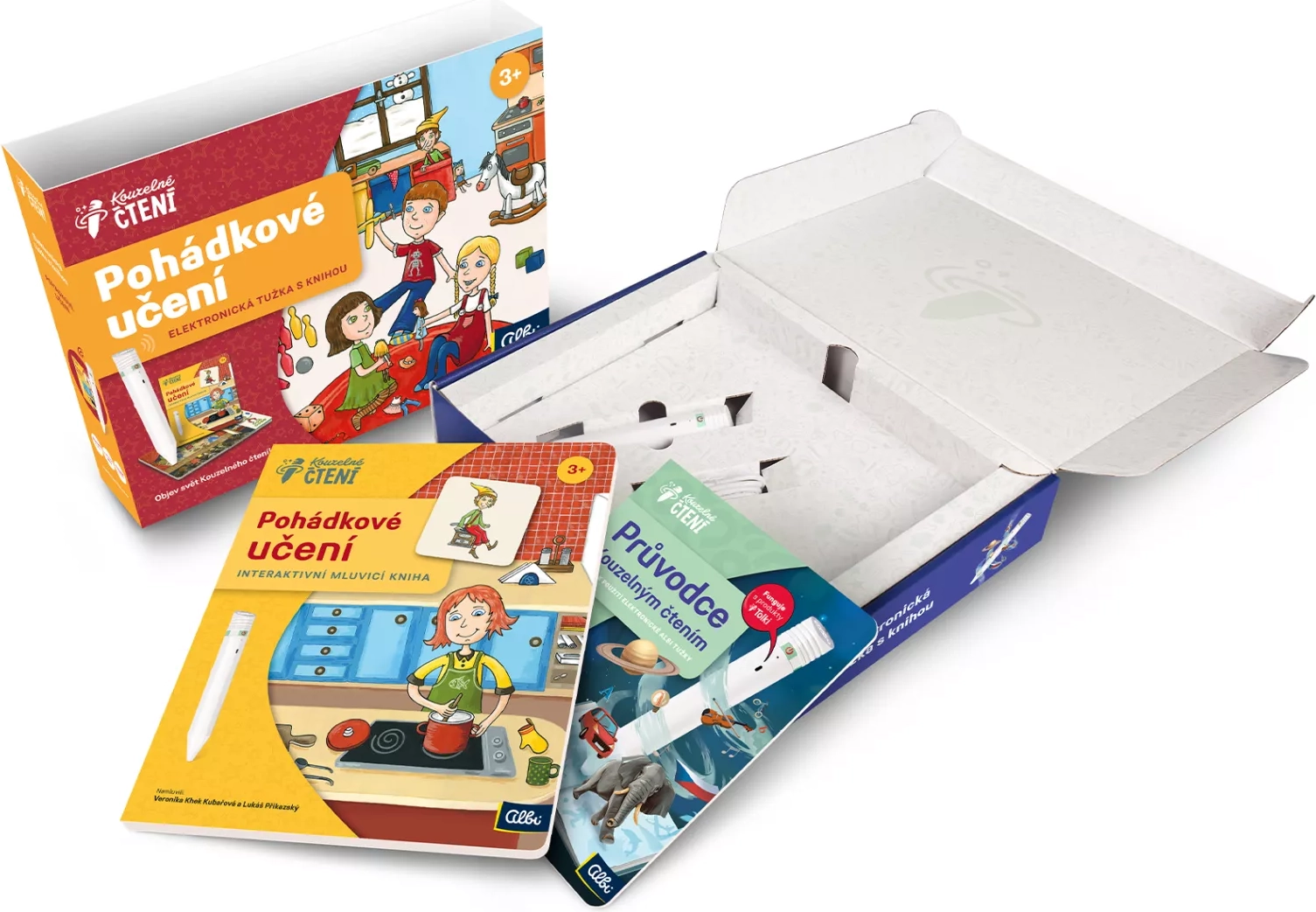 El set es ideal para dar los primeros pasos en la lectura y el descubrimiento del mundo. Basta con tocar con el lápiz electrónico las imágenes o el texto y de inmediato se reproduce información, un sonido o música. Así, los niños pueden “leer” el cuento por sí solos y, al mismo tiempo, desarrollar su percepción auditiva, lógica y vocabulario. A lo largo de todo el libro guía el duendecillo Zvídálek y el contenido está locutado por actores profesionales (Veronika Khek Kubařová y Lukáš Příkazký).