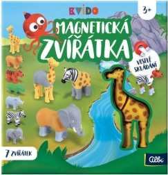 Descubre un mundo de diversión con el set magnético Kvído, donde los niños pueden crear tigrores, cebrafantas o leogirafas. Cada animal consta de cuatro partes que se pueden conectar e intercambiar fácilmente. Los imanes garantizan estabilidad, por lo que las piezas se adhieren perfectamente al tablero de juego plegable incluido.